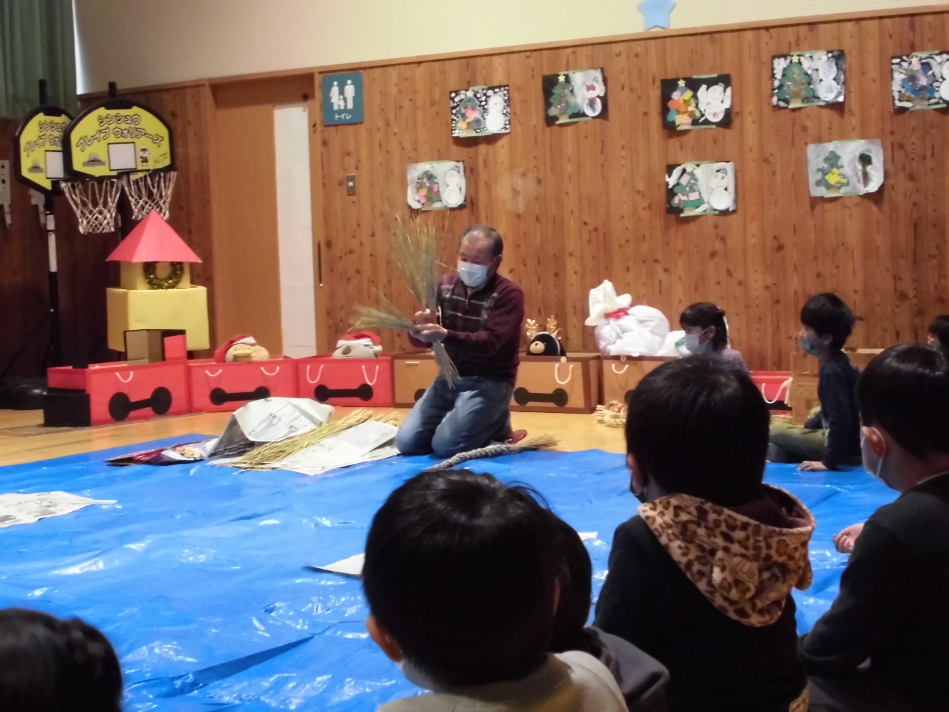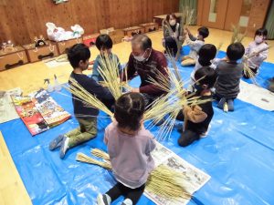 地域の方がしめ縄の材料を準備して作り方を教えてくださることになったので、年長児が挑戦することにしました。