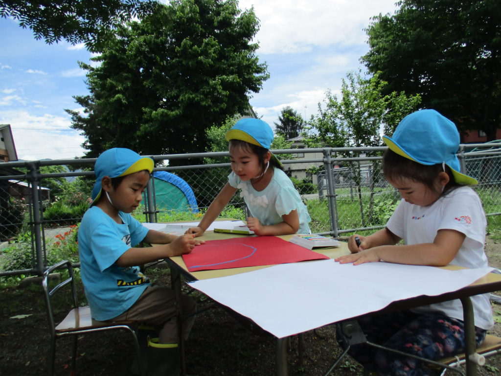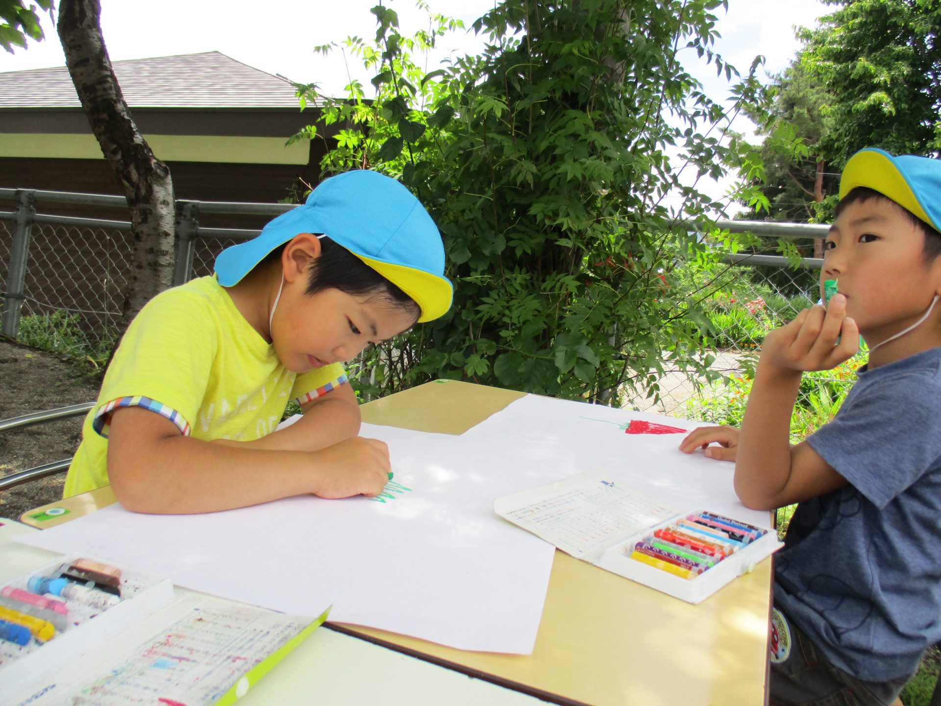 場所も決まり、いよいよお庭でのお絵描きが始まりました。