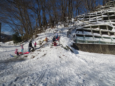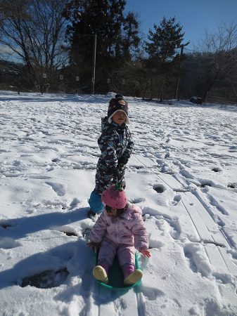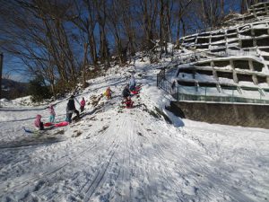 小さいお友達を引っ張ってあげたり、自分たちでは豪快に滑ったり・・・