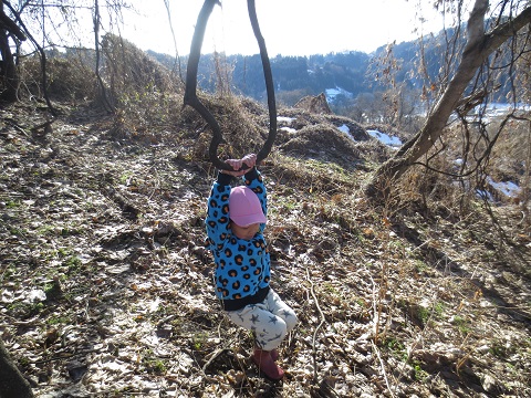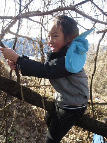 森の中の遊びは、遊びを自ら見つけ出し、夢中になって没頭する姿には本当に驚かされました。