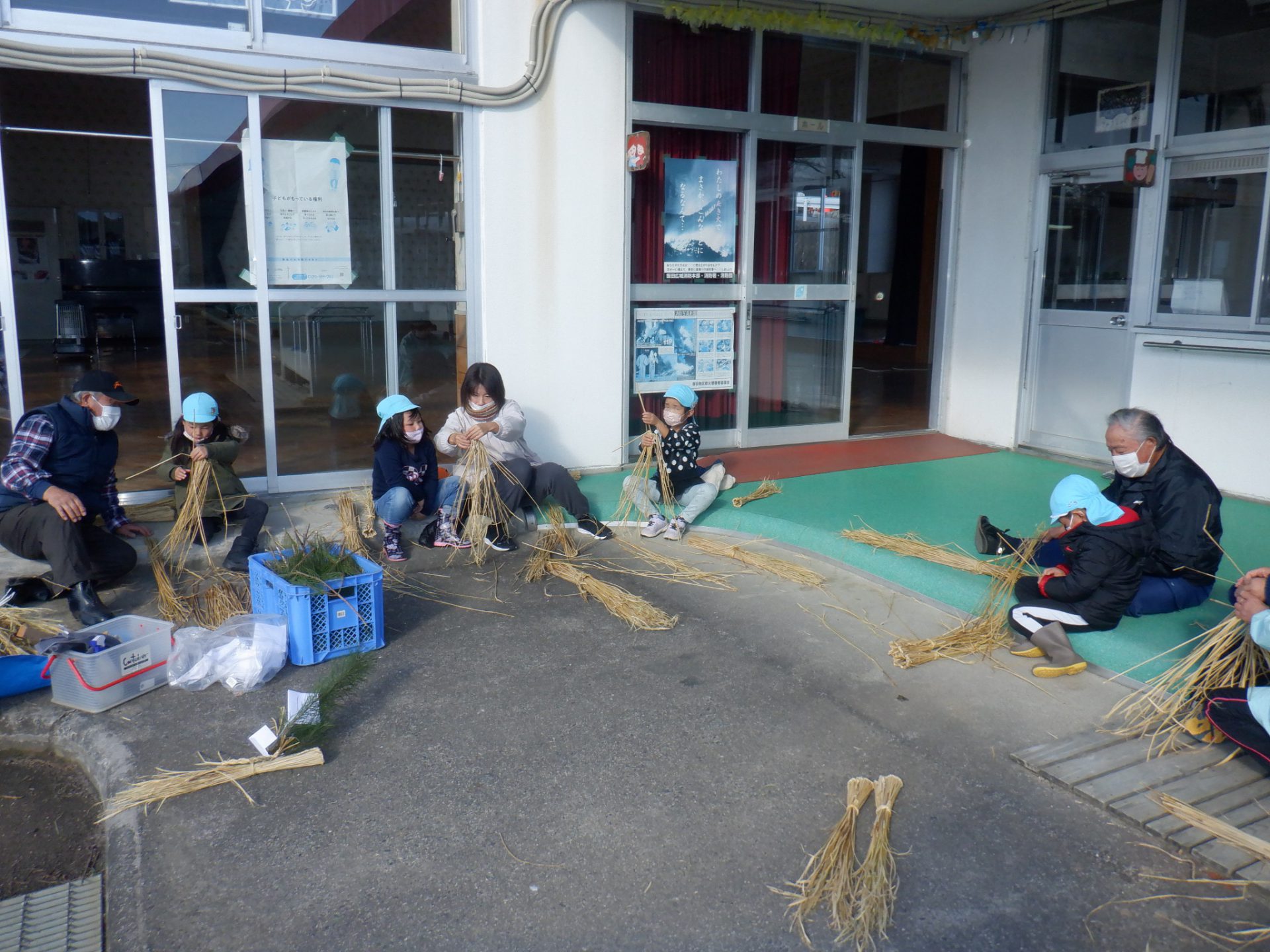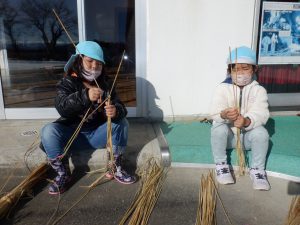 ・今では、松飾りなども手ごろなものが売られていて、家でつくるようなこともなくなってきましたが、子ども達には昔から伝わるお正月に飾る意味や由来を知ってほしいと思い、地域の方の協力していただき松取り、おやす作りを行っています。