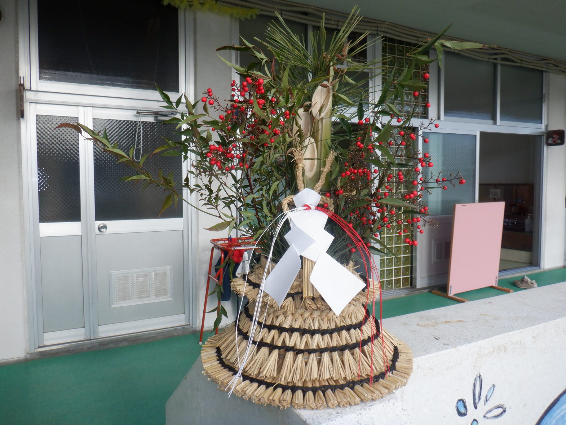 杵原応援団の方が松取りで取った松使って、りっぱな門松を作って持ってきてくださいました