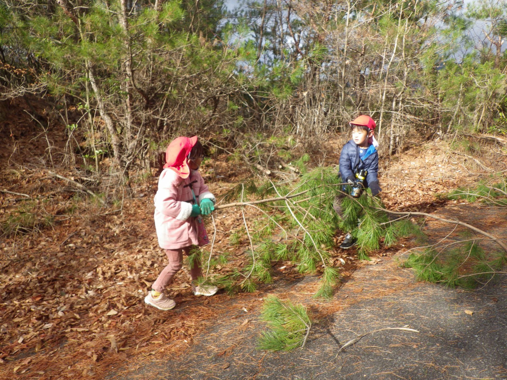 12月、お正月の飾りに使う松を年長さん・年中さんで取りに行ってきました。
