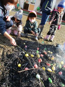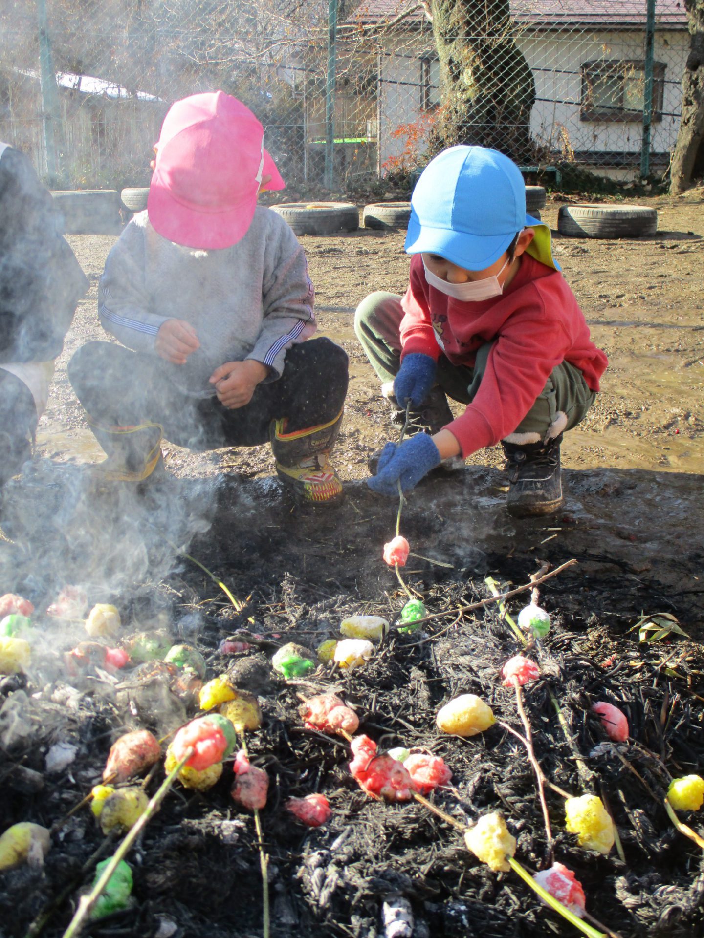 おうちの皆さんのお力もお借りして、どんど焼きをすることができました。