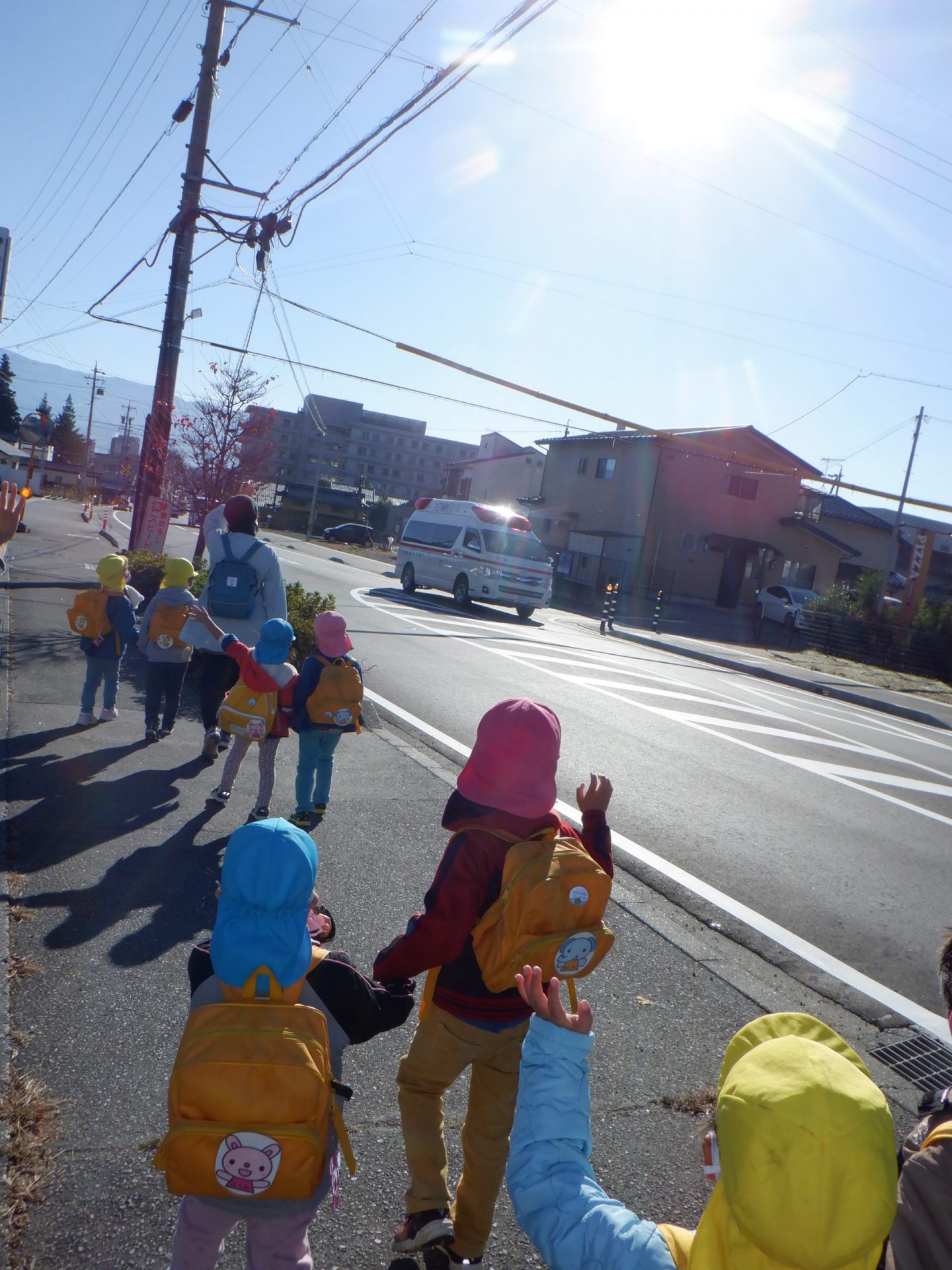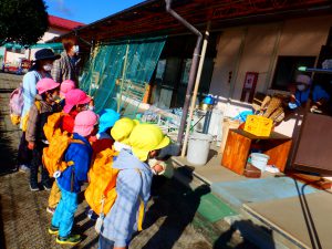 給食先生に「お留守番お願いします」「行ってきまーす」と出発