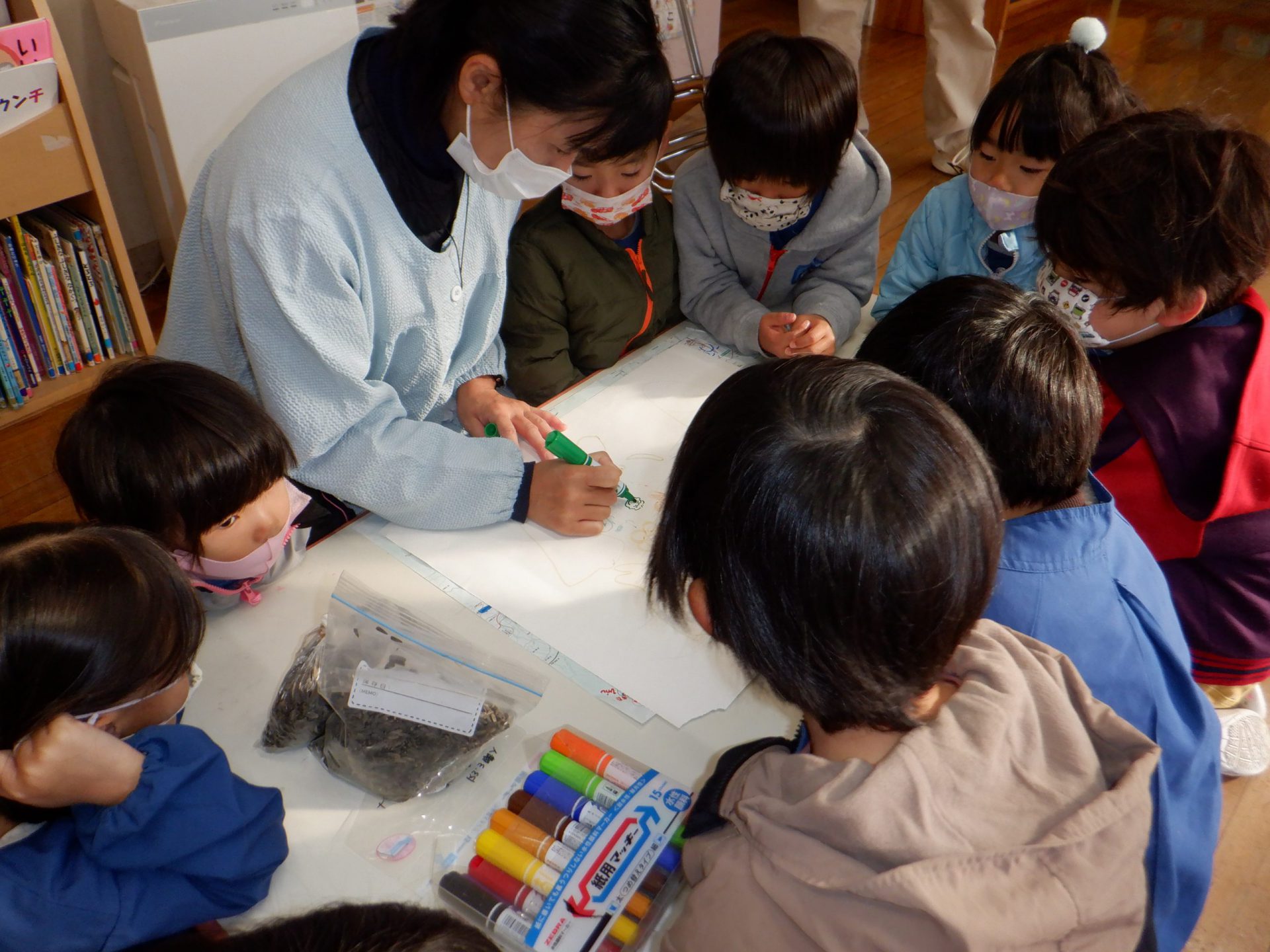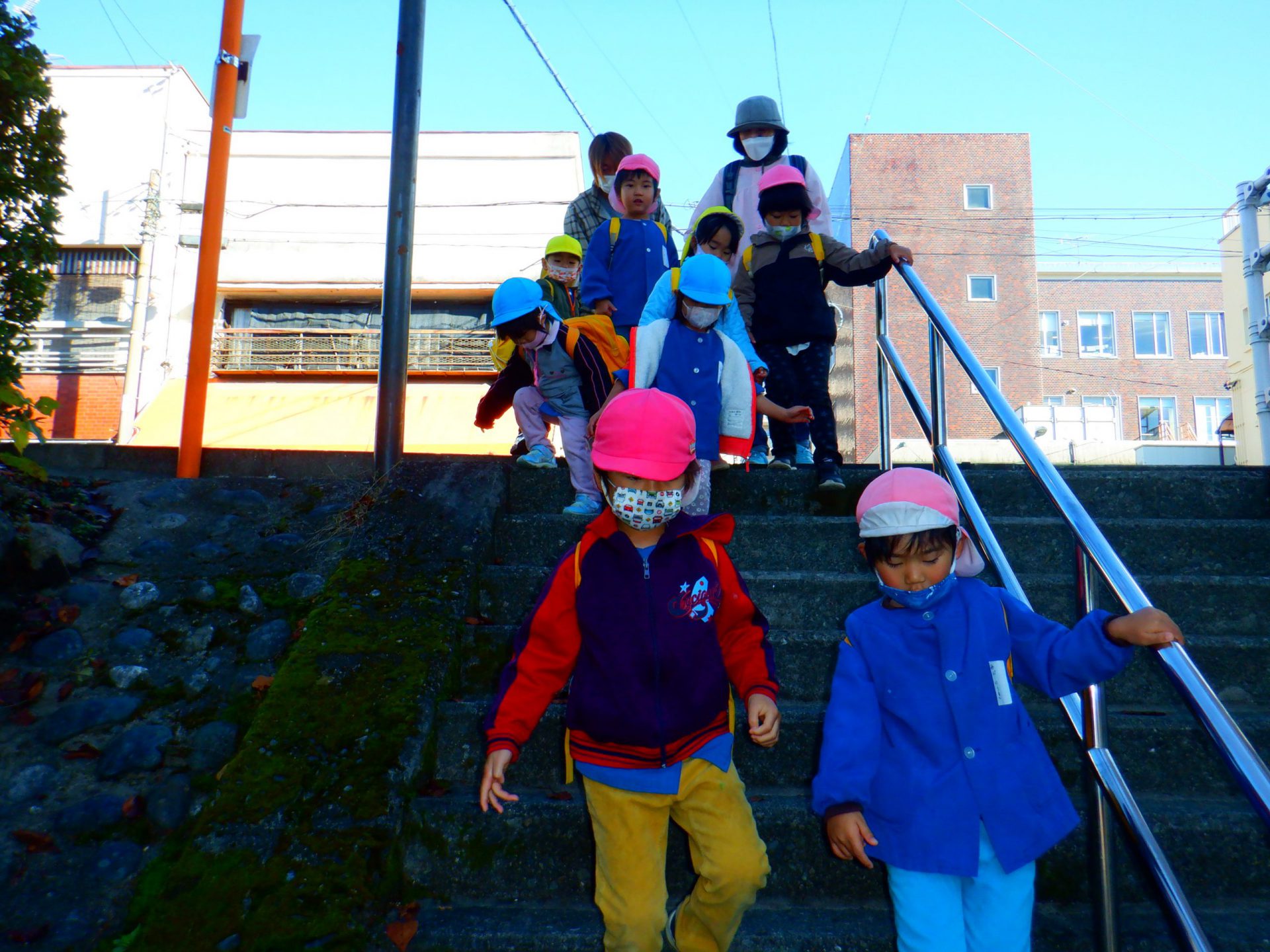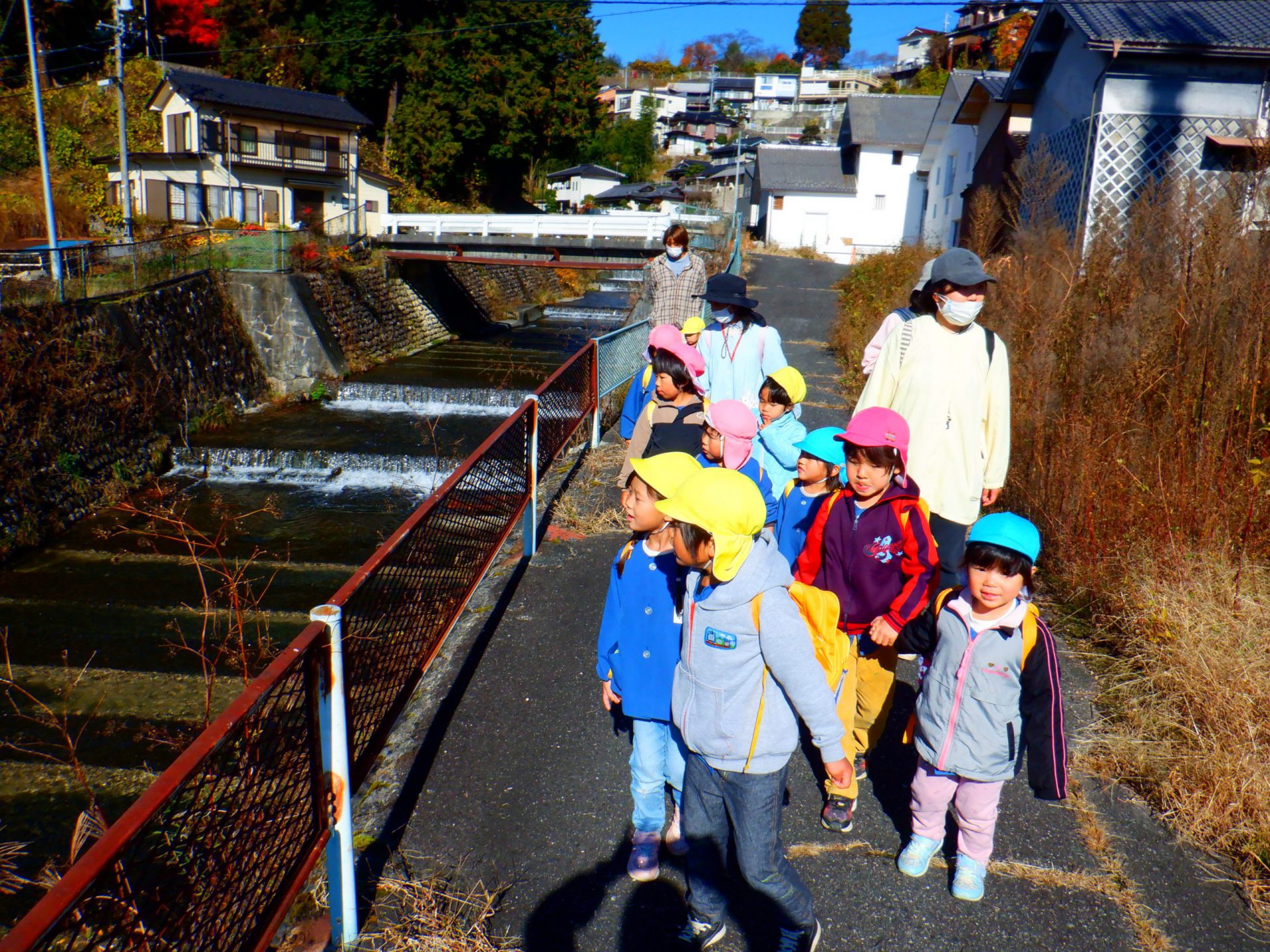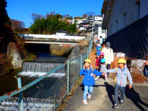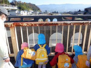 駅がすぐそばにある我が園の環境もあり、午前中の散歩で「川巡り」と「電車での旅」が体験できたことは子ども達にとっても楽しい時間となったと思う。