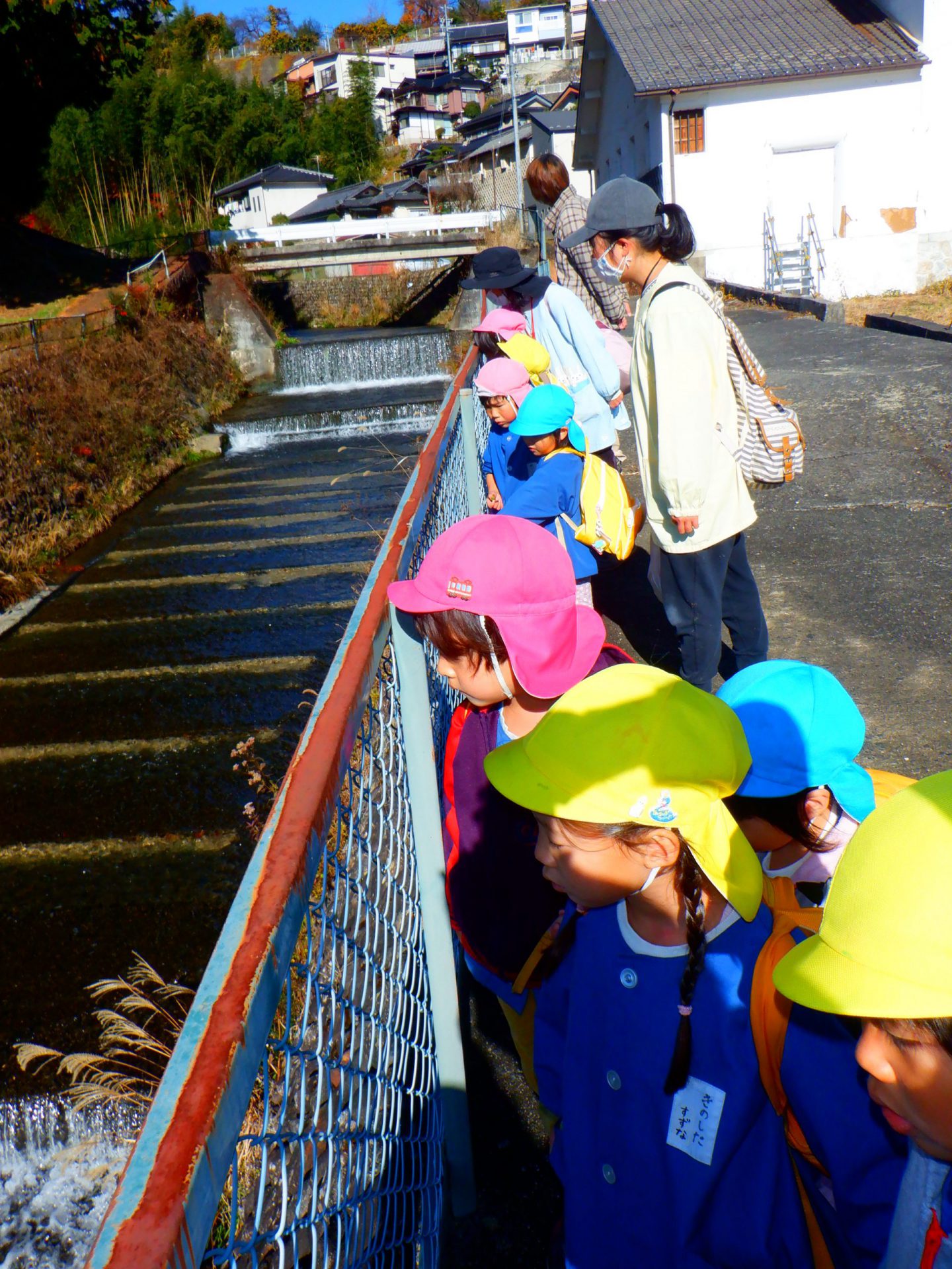 「お~広い川」と大きい声を上げる子ども達。