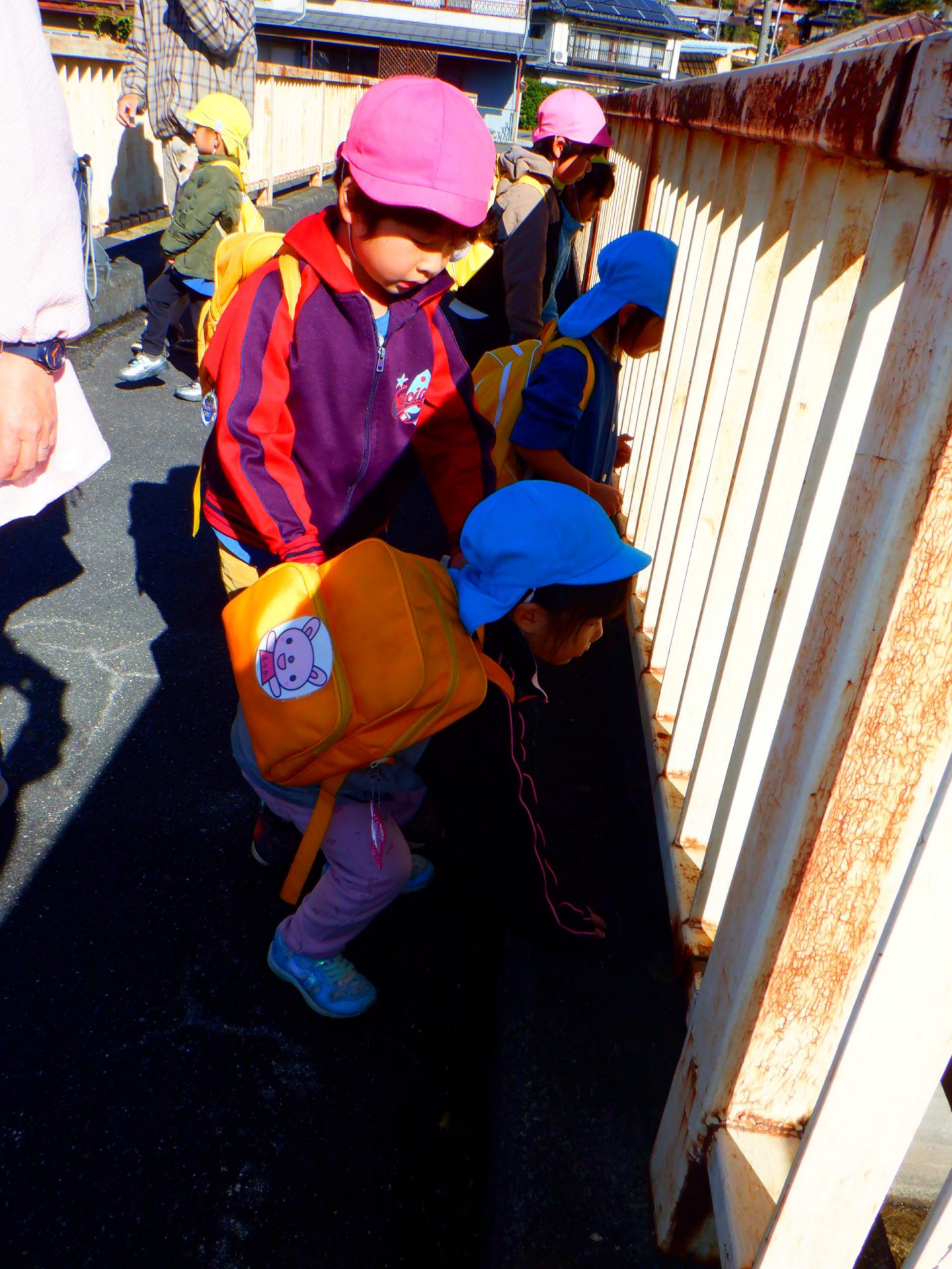 「ここから(隙間から)見えるよ」「魚いるかなー」
