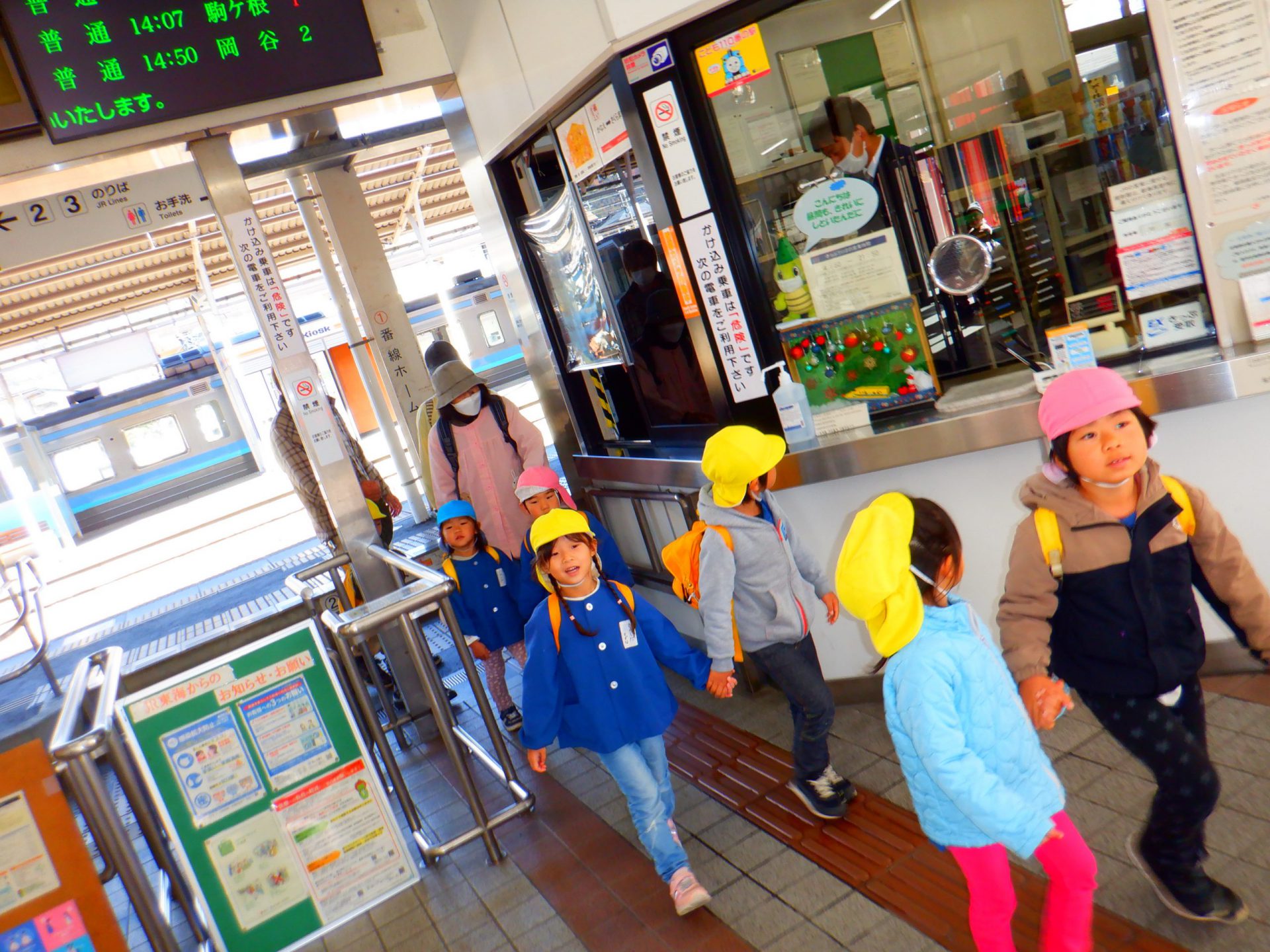 飯田駅でおり、保育園へ・・・
