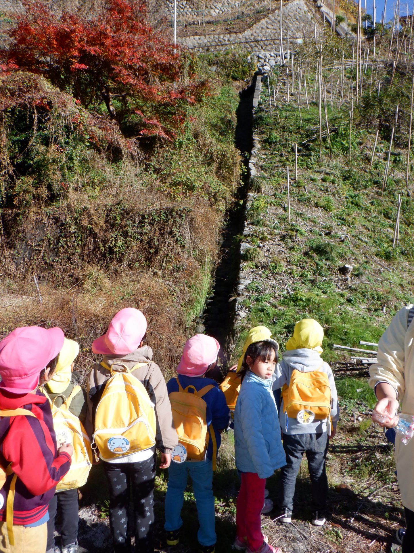 「今日はこの先まで探検だー!おー!」