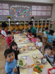 子ども達の声・・・「僕は、大きいの!」「おいしいね!」「もっと食べたい!」「おかわりは?」