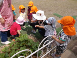 *いちごは、小さいクラスから順番に、自分でとって、洗って食べました。(もちろん、小さいクラスは、職員が洗いました。)