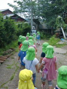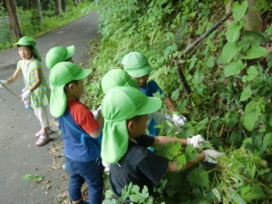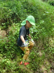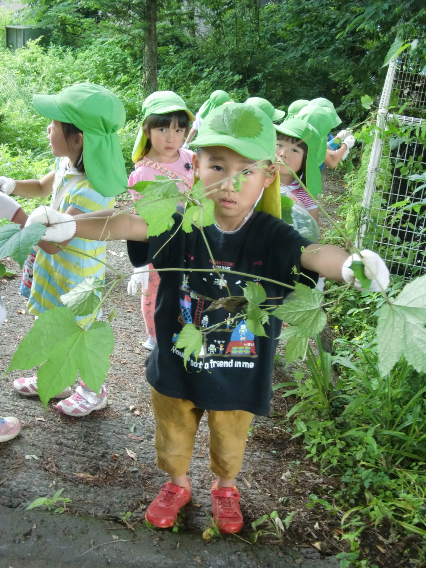 抜けない物は、みんなで力を合わせて引っ張ったり、取った植物は協力して袋に入れたりと、前回のレンジャーさんと一緒に行った散歩がきっかけで、子ども達の意識も変化して、故郷戸隠を守っていく子ども達に成長してくれると、いいな。