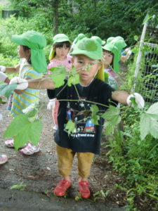 子ども達から、「軍手していこう、トゲトゲの物もあるから。」という意見がでました。日頃の散歩で、良く観察している証拠ですね。さすが、レンジャーの弟子。