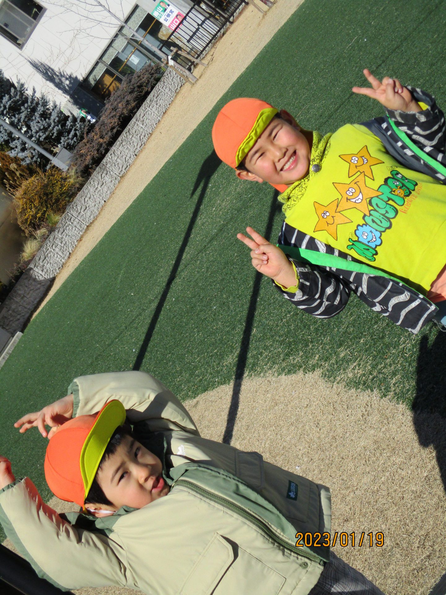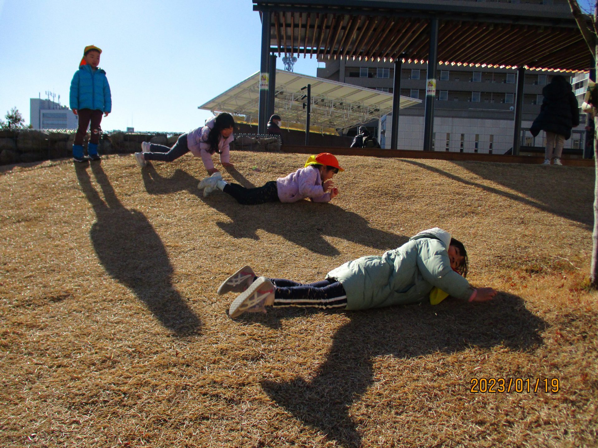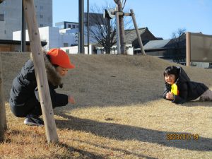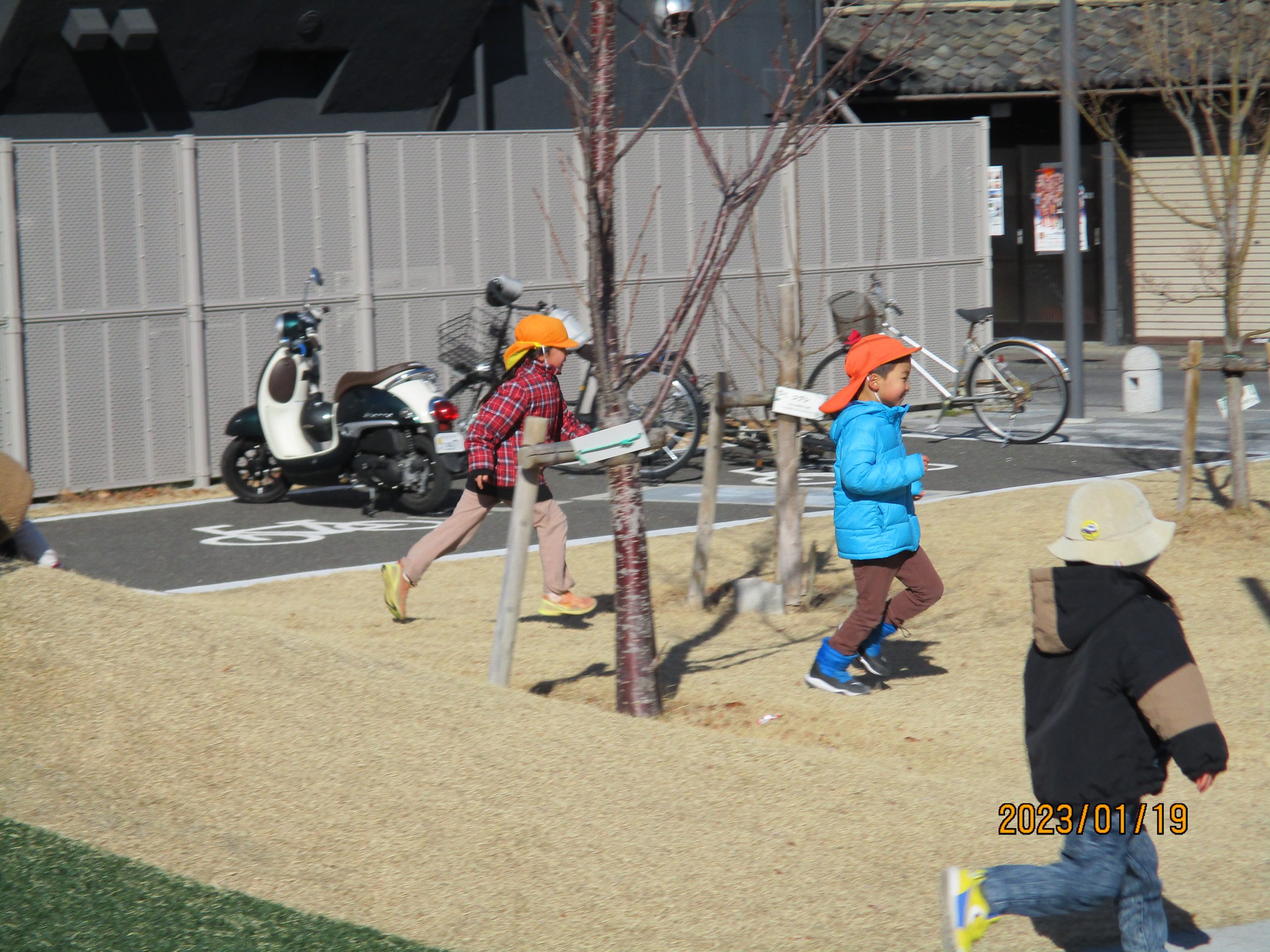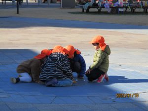 1月の天気の良い日、年中クラスで近隣の広場に散歩に行きました。