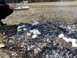 最後にどんど焼きの火で焼いたお餅を食べて。