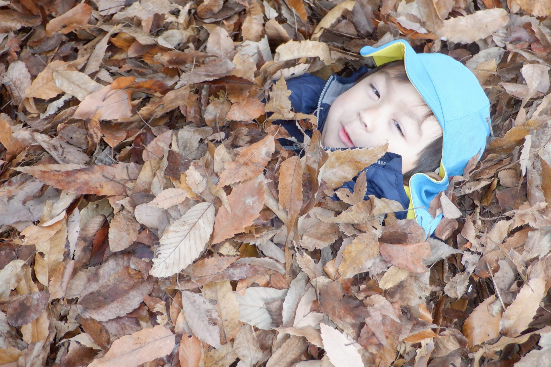 ナマケモノに変身!落ち葉のお布団は、温かくて気持ちいい♡