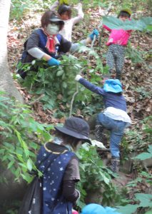 昨年度から皆神山の登山道入り口を遊び場としてお借りしていろいろな遊びを楽しんでいます。その名は「皆神ランド」
