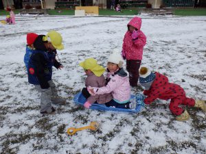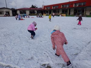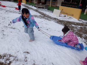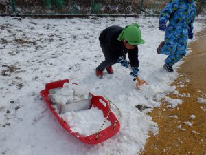 冬ならではの遊びを楽しむ中で、友だちと協力したり、小さい子に優しく関わったり、年長らしさを発揮している素敵な姿を沢山見ることができました。