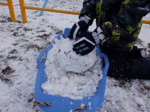 「ゆきだるまつくろう!いっぱい雪を集めるぞ!」