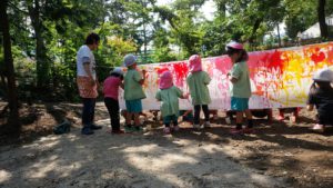 土 つくる 森の中で、絵の具で遊ぼう!!