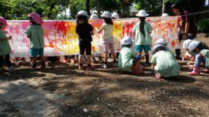 大きなキャンパス、絵の具を好きなだけ使って好きなだけ描いていい環境にみんな、目を輝かせていました。