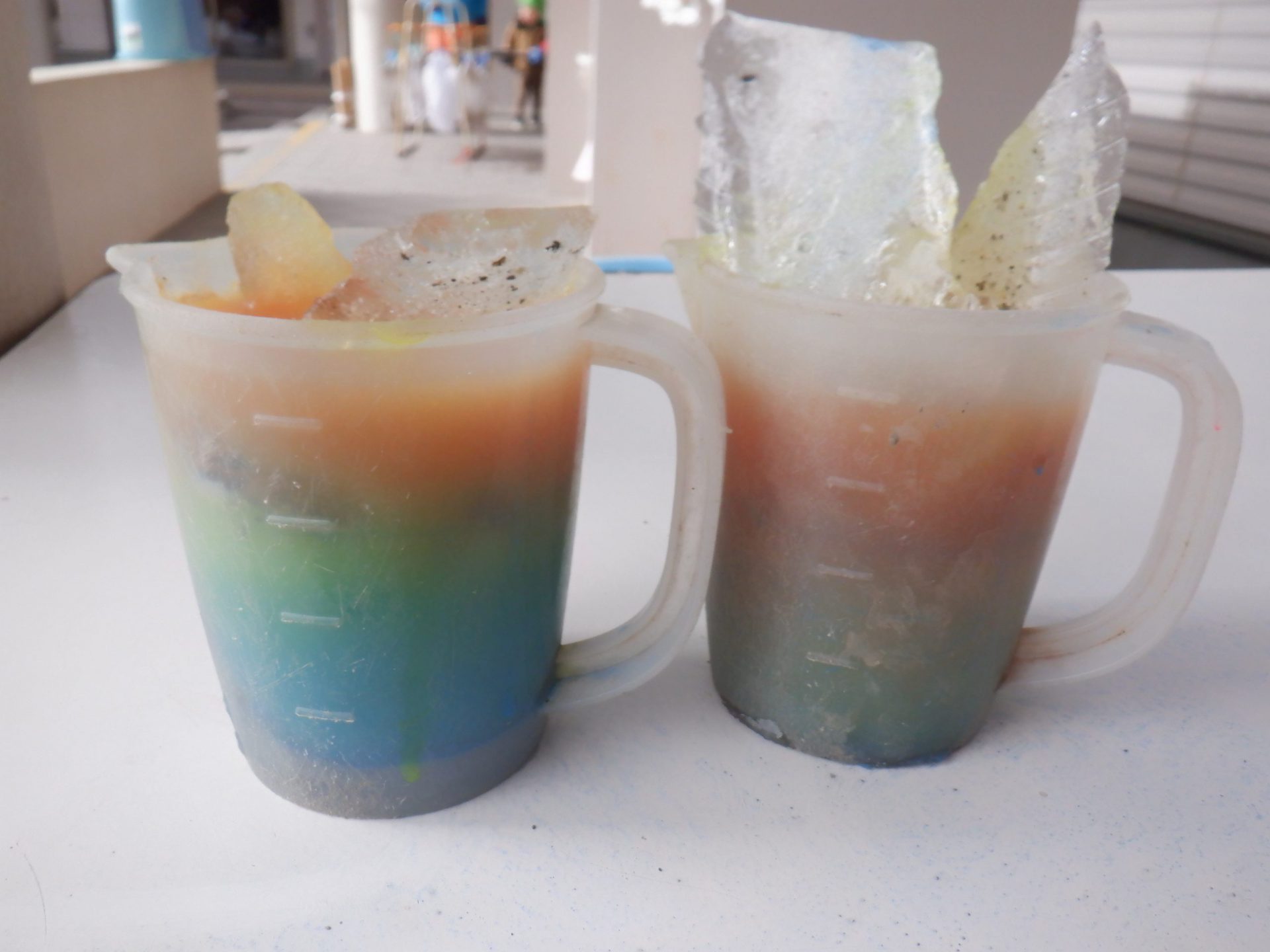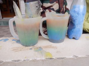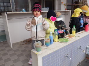 年長児は色を順番に重ね素敵なジュースを作っていました。