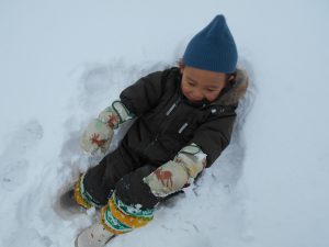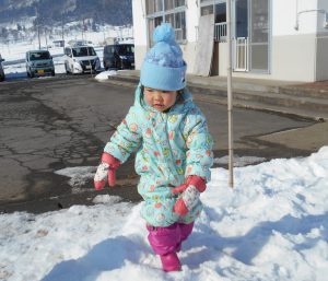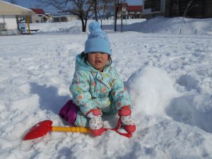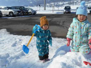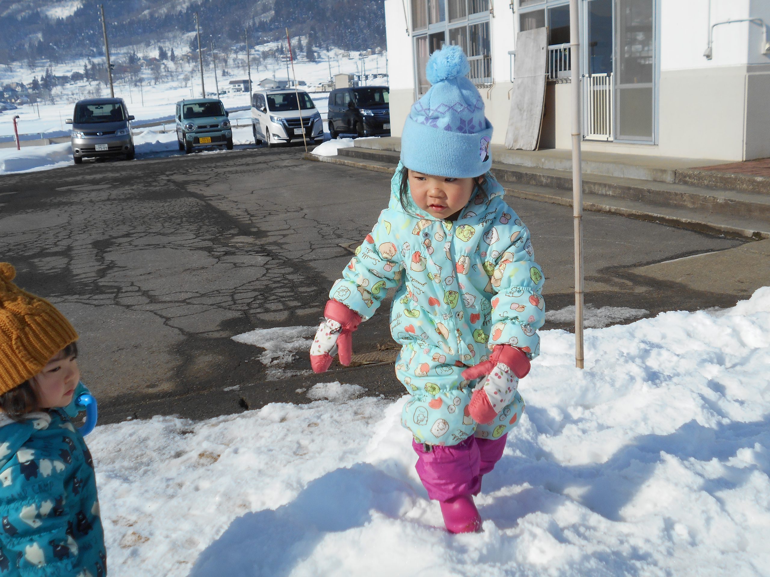 でも、パパに悪いから、登園してから雪遊びしようね。