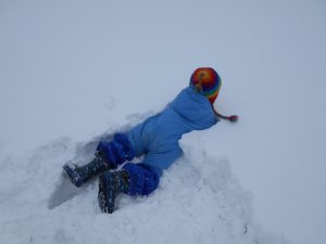 「早く代わってぇ〜」(我が保育園の園庭遊具は、春までお預けなのです。久しぶりの滑り台でした)