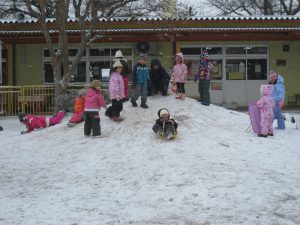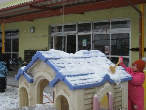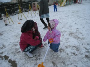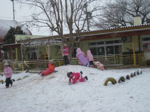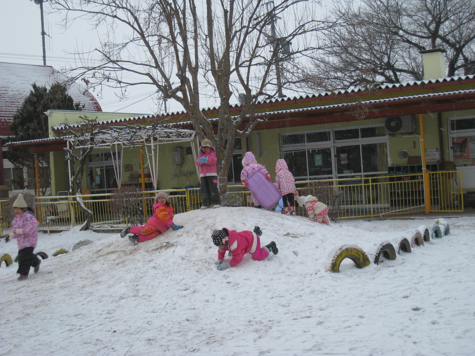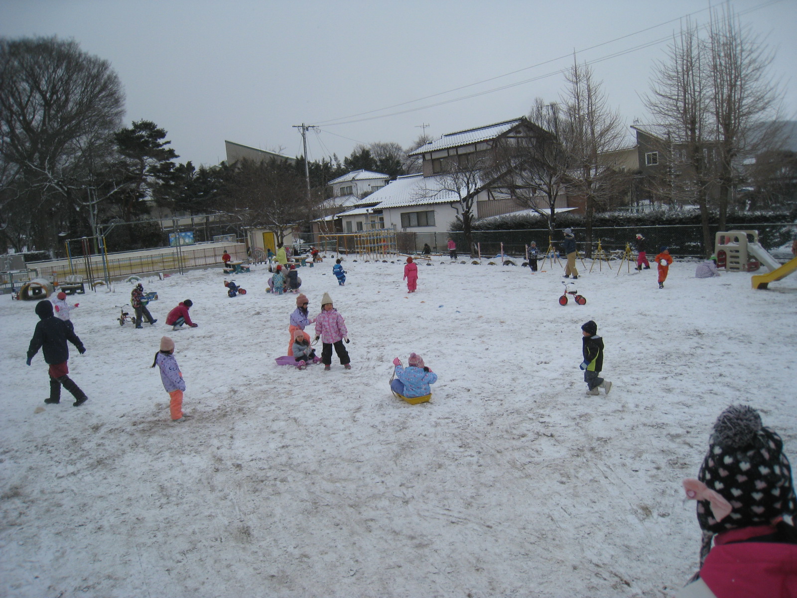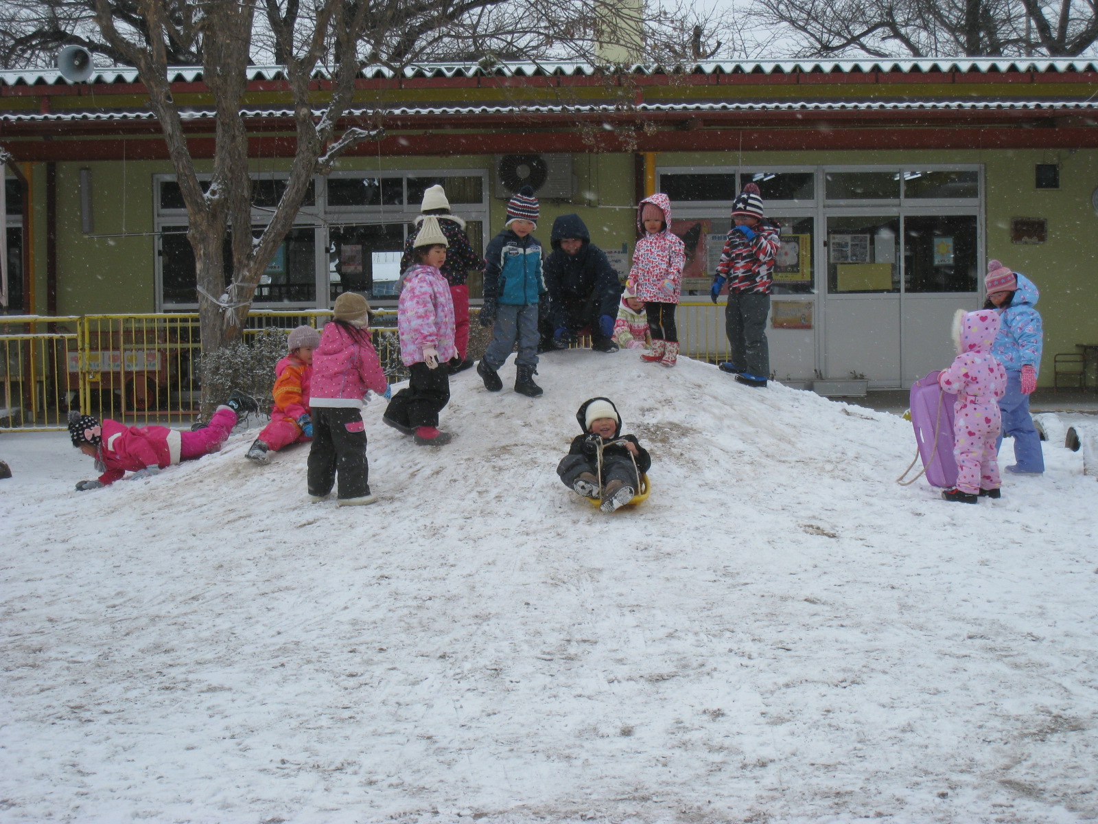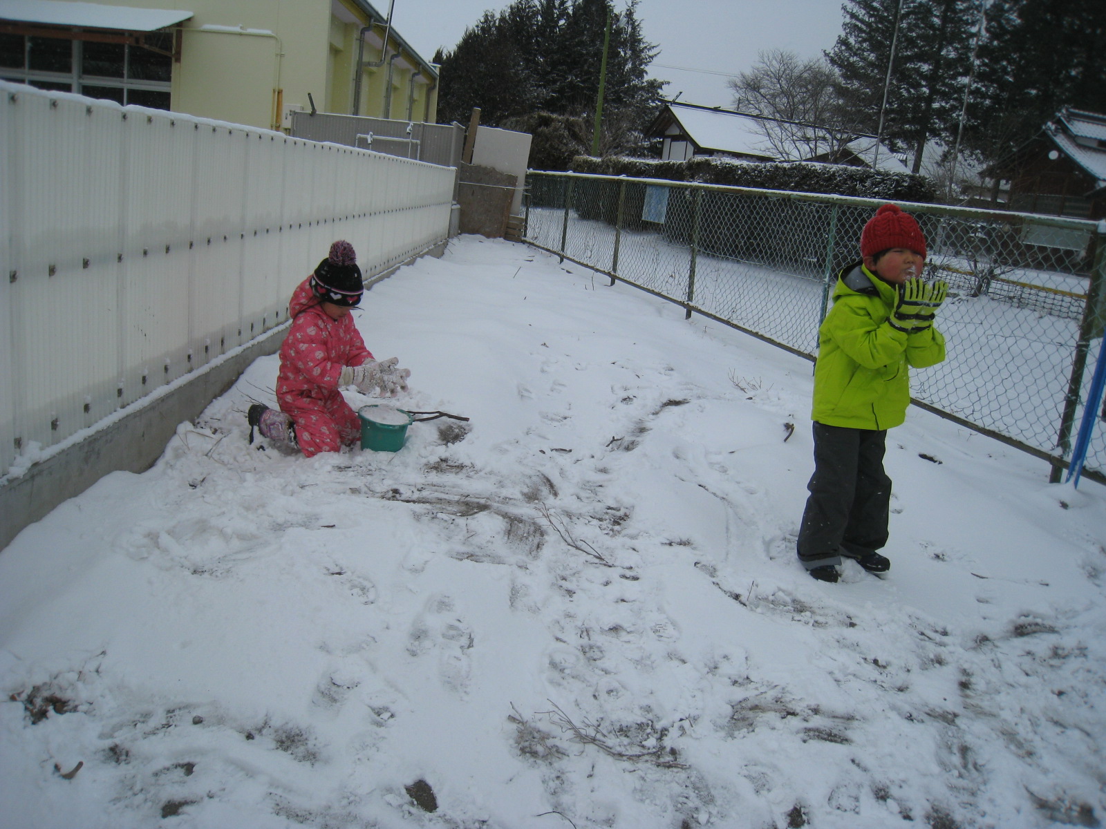 大寒波が佐久にも到来しました・・・。大人は不安ばかりでしたが東っ子たちは今年度初めての積雪に大喜び!積雪と言っても、4センチ程度・・・。雪を集めたり、ソリ滑り、雪合戦をしたり、雪だるま作りなど、一人一人が、思い思いに楽しみました!