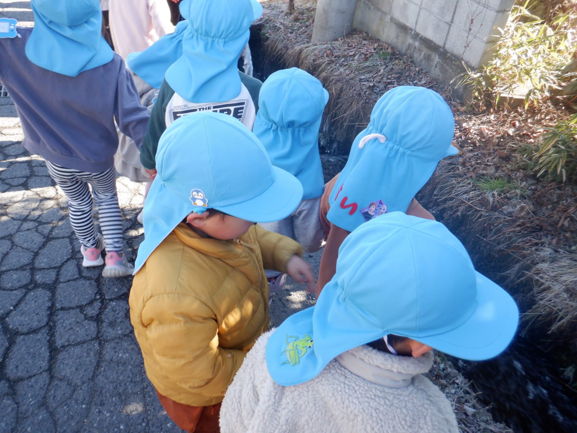 自然にできた氷にいろいろな形があることや、いろいろな場所に氷ができていることに気づいた子どもたち。