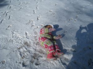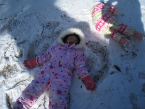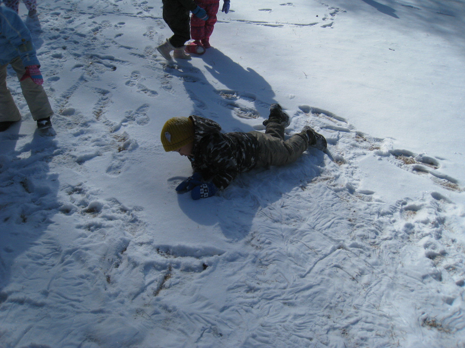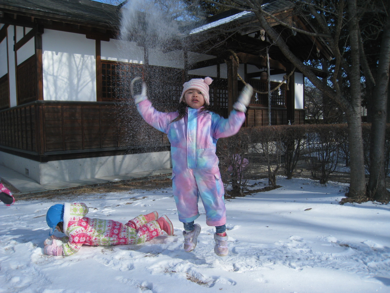 思い思いに雪遊びを楽しみます!雪の上をコロコロ寝転がり楽しむ子、雪をかき集めお山にする子・・・