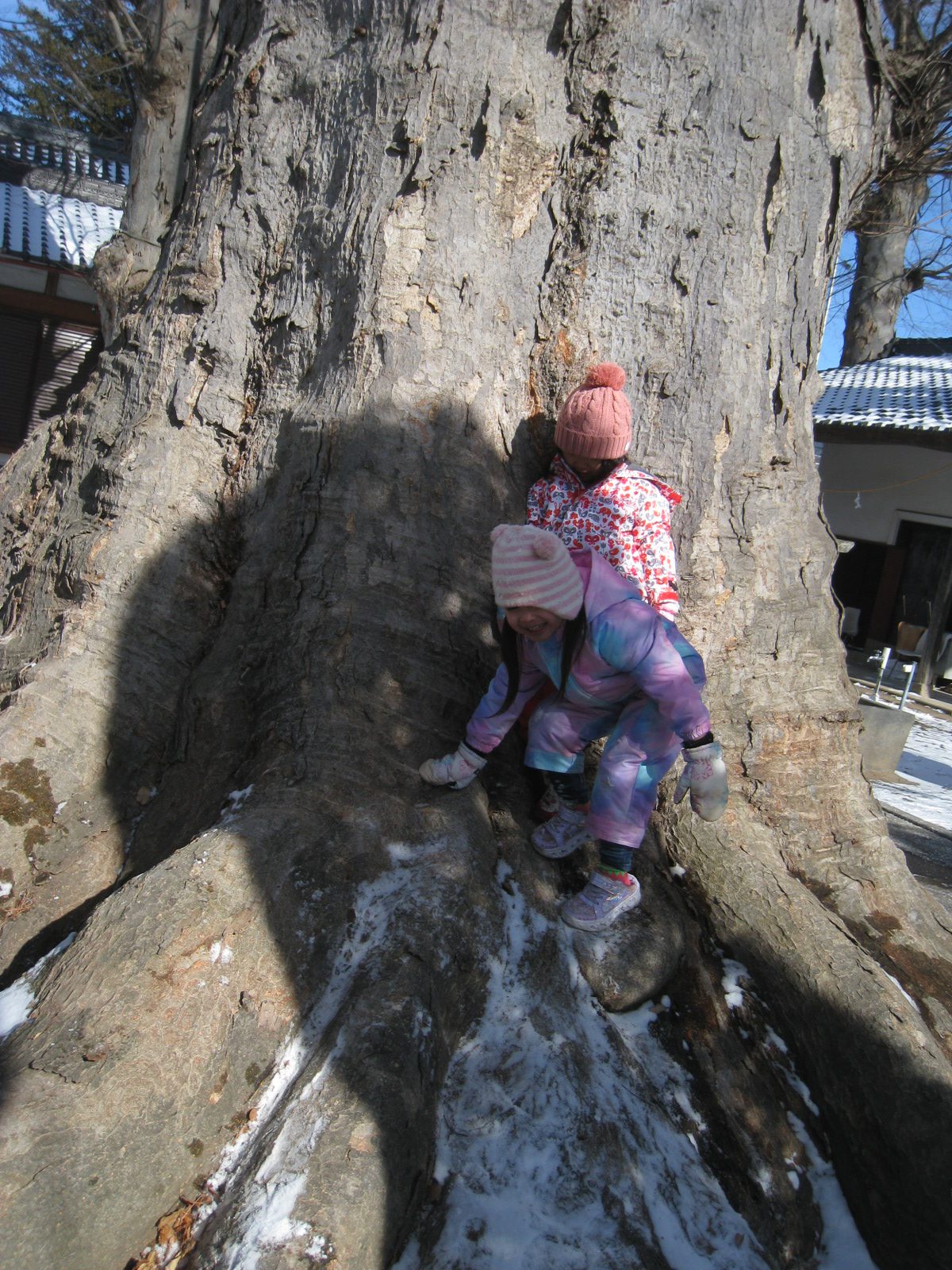 園の隣にある八幡神社様に雪があるのをみつけ、3歳児クラスが出掛けて行きました!