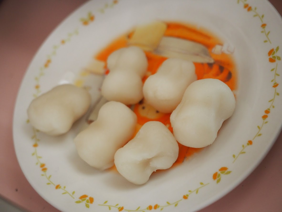 みんなで繭玉作りをしました。米粉の蒸された匂いを感じながら手で丸めました。米粉100%なので、力を入れて丸めました。