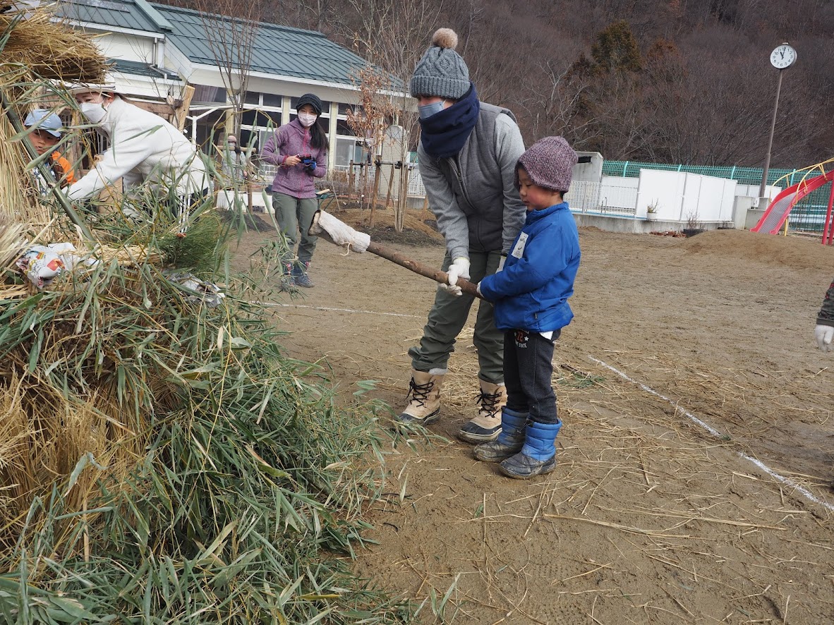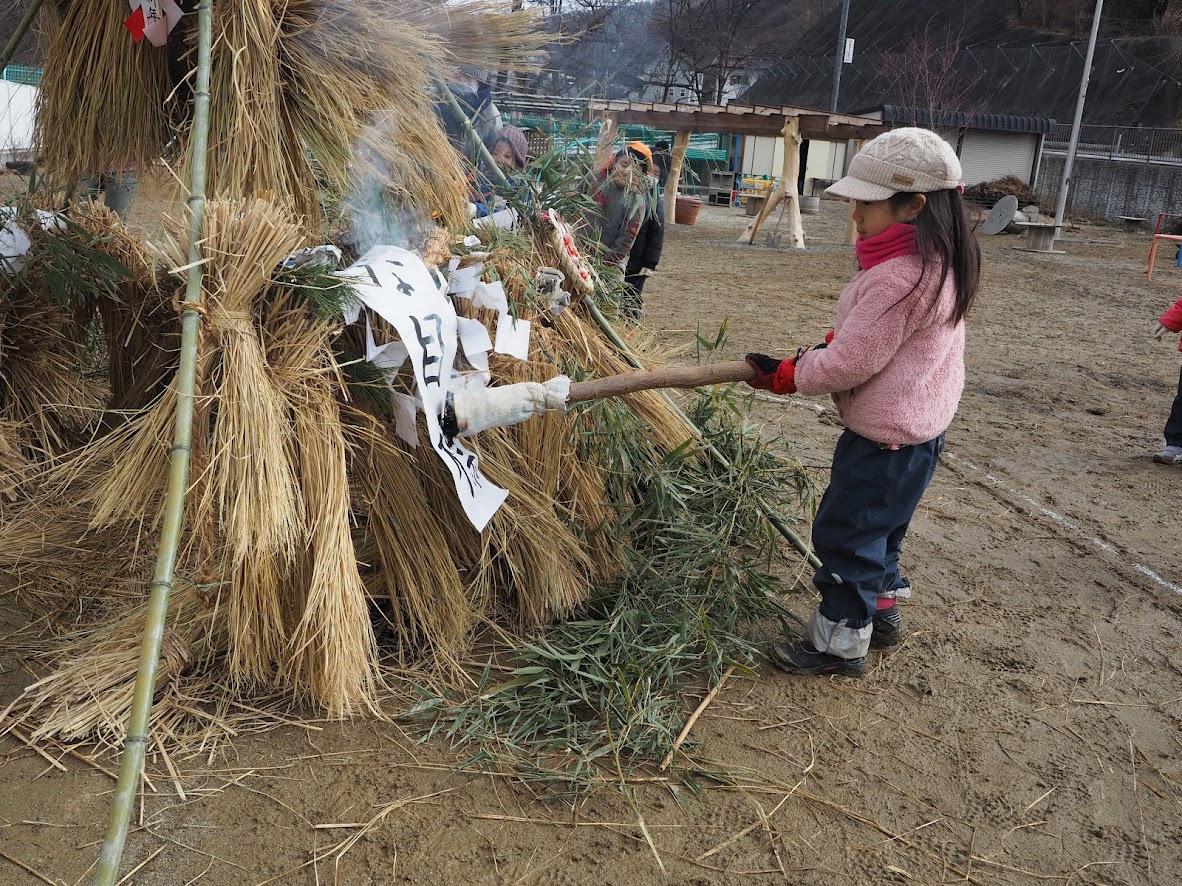 安曇野の行事の一つである三九郎。冬を過ぎこれから来る春からまた1年が始まります。今年、またいっぱいお米がとれてみんなでお餅つきをして、おいしいものたくさん食べたい。その願いや祈りがより具体的に一人一人の子どもたちの心に入り込んでいるのがよくわかります。