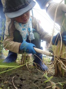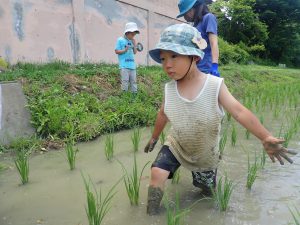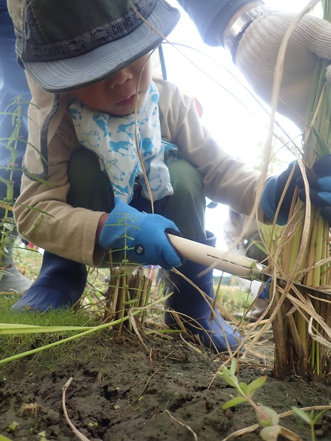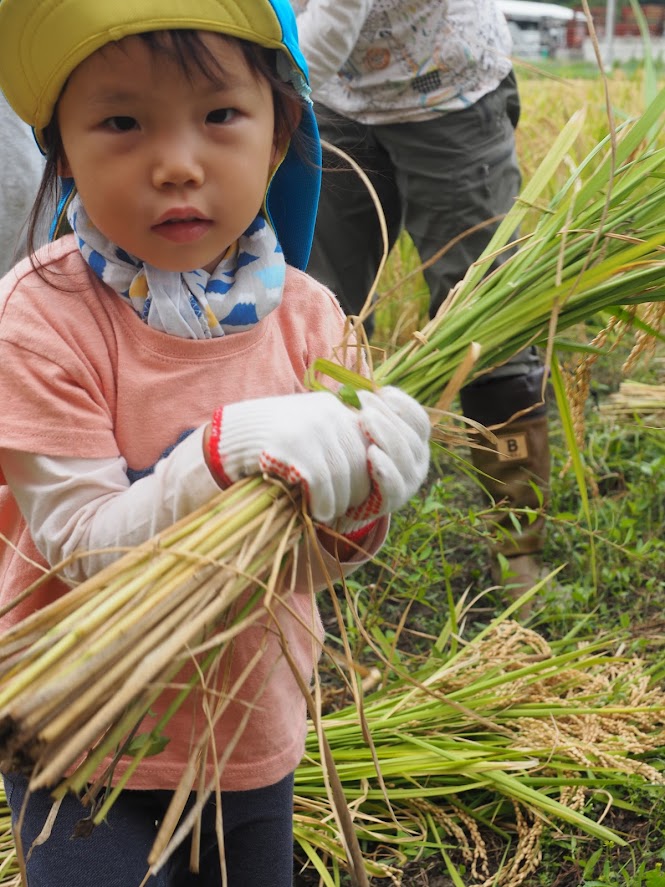 くじら雲では自分たちの田んぼや畑でお米や、野菜を収穫します。農作業から、自分たちの口に入るまでの工程を子ども、スタッフ、そして保護者の皆さん、強いては地域の方々の協力をいただきながら暮らしています。