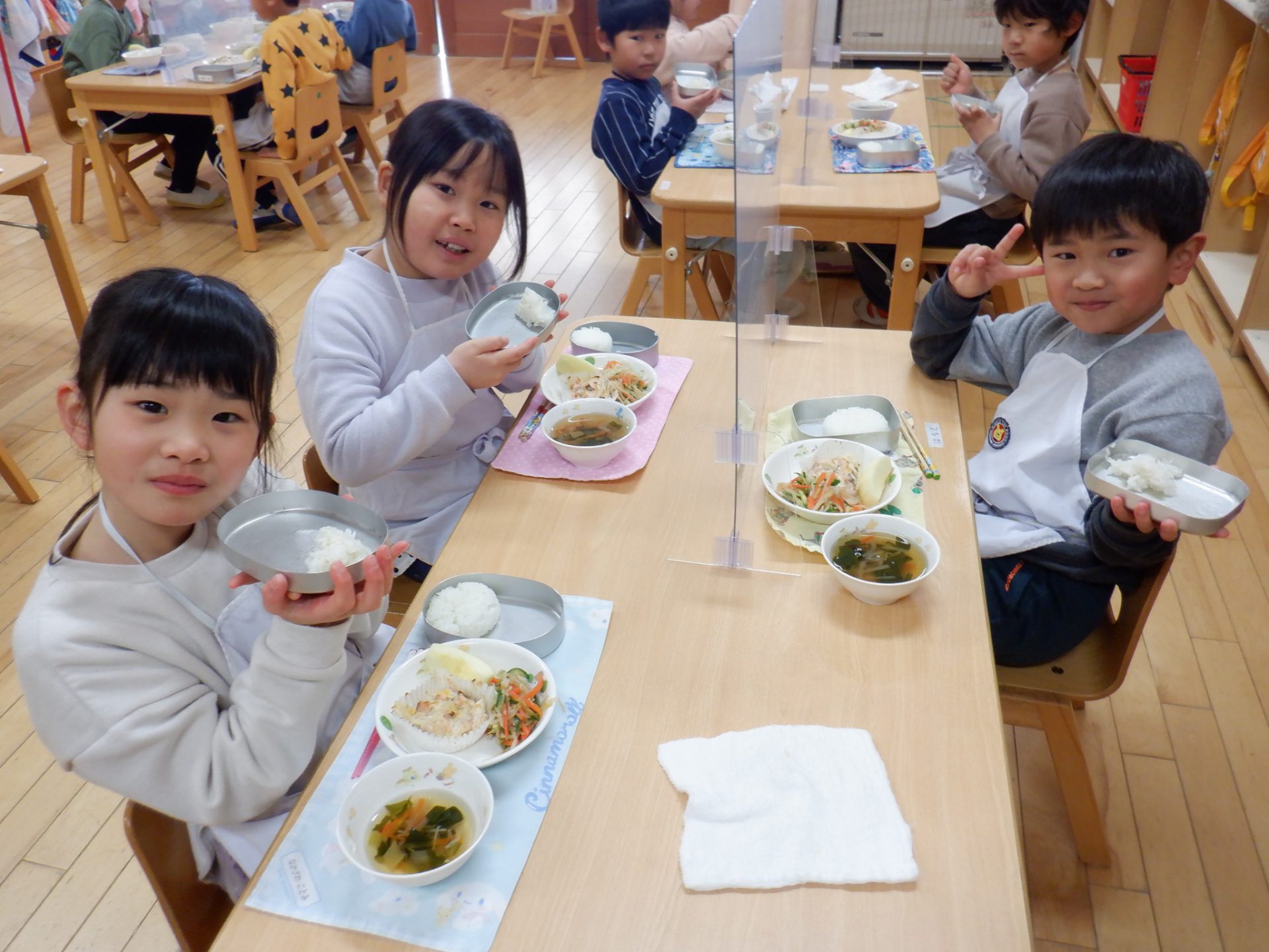 精米したお米はなんと5合分も取れて、年長児皆で美味しく食べました。
