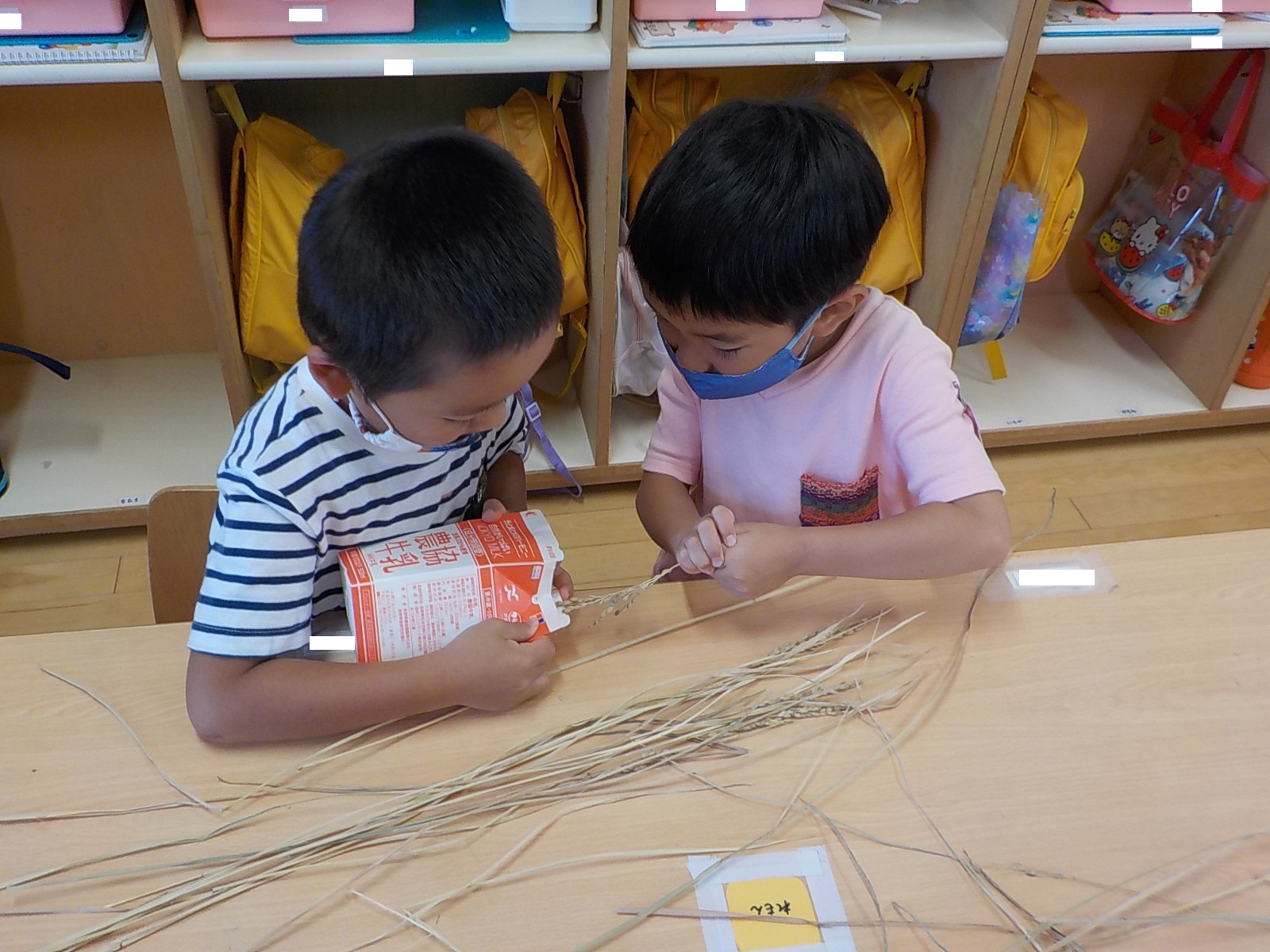 春から育ててきたお米。自分たちで成長を見守ってきた分「おいしい、おいしい」と言って味わう姿がありました。普段何気なく食べている物でも実はたくさんの工程があって出来上がっているものであることが分かり、今まで以上に食に対してありがたさを感じているようでした。お米作りをしたことでお米にも種類があることが分かり「これはなに?」「この部分はなんていう名前なの?」と気になっている様子がありました。