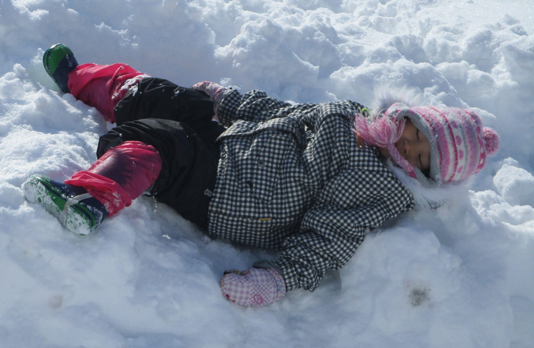 たくさん雪を運んで、疲れちゃったかな。一生懸命、雪を集めていたからね。ひと休みして、また遊ぼ。