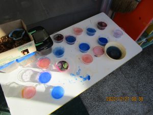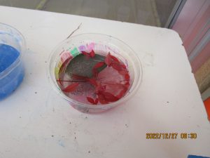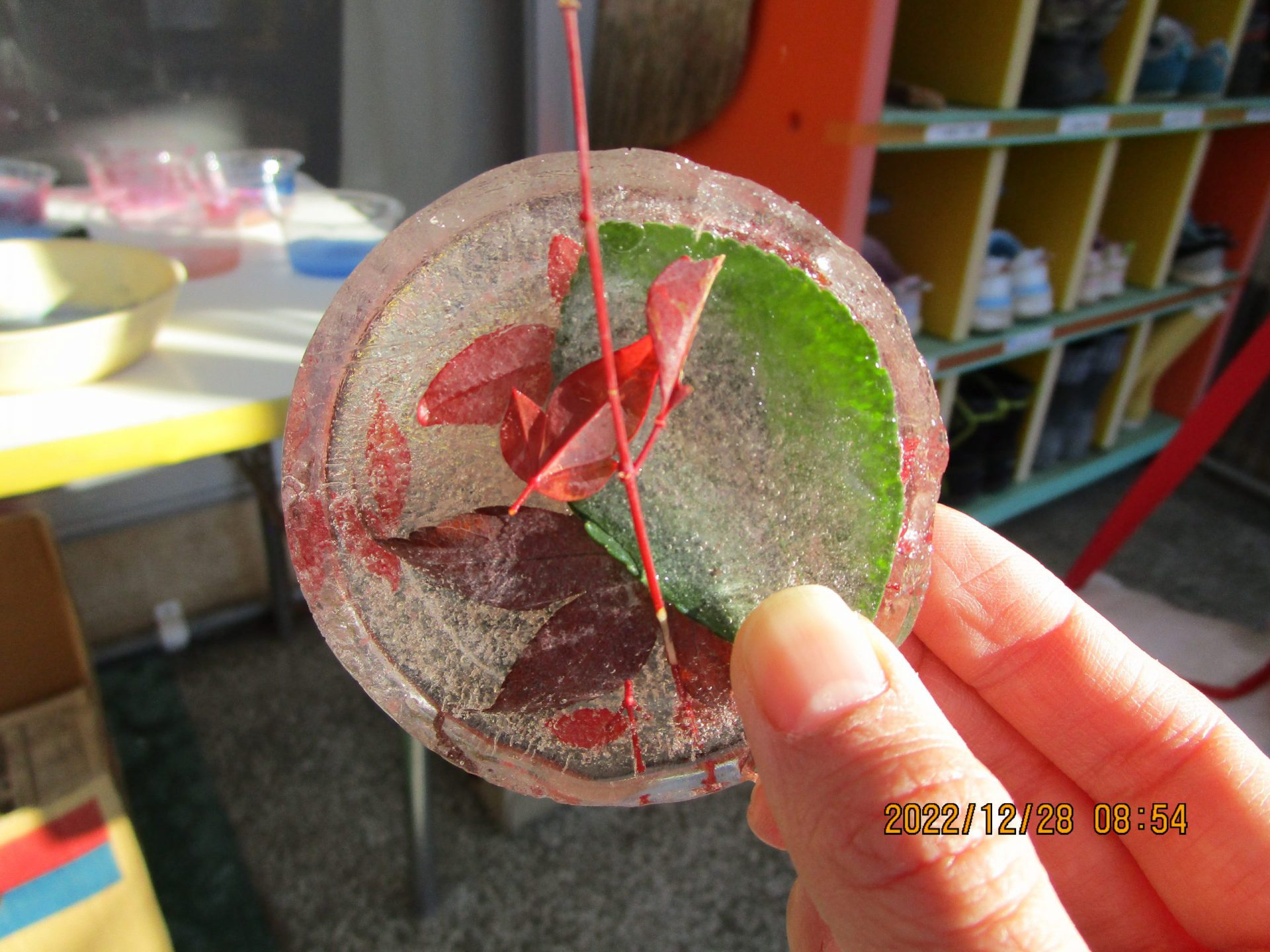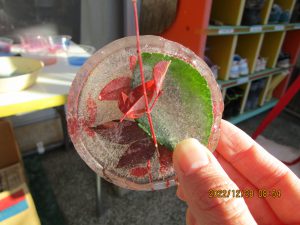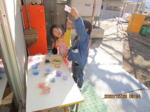 冬のある日、水が氷になったのを見て、氷を作りたい!と子どもたち。絵の具で色も付けてみました。