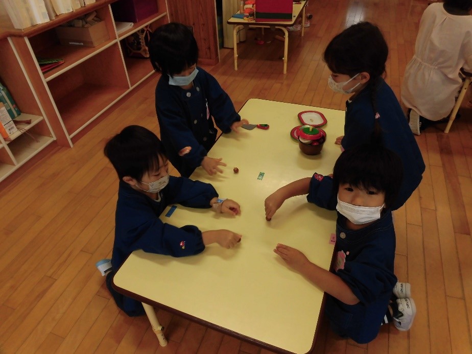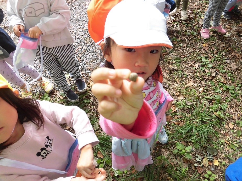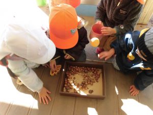 昨年の秋に保育園の近くにある鼻顔稲荷公園でどんぐりをたくさん収穫して楽しみました。