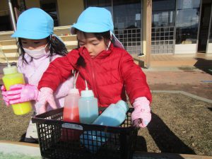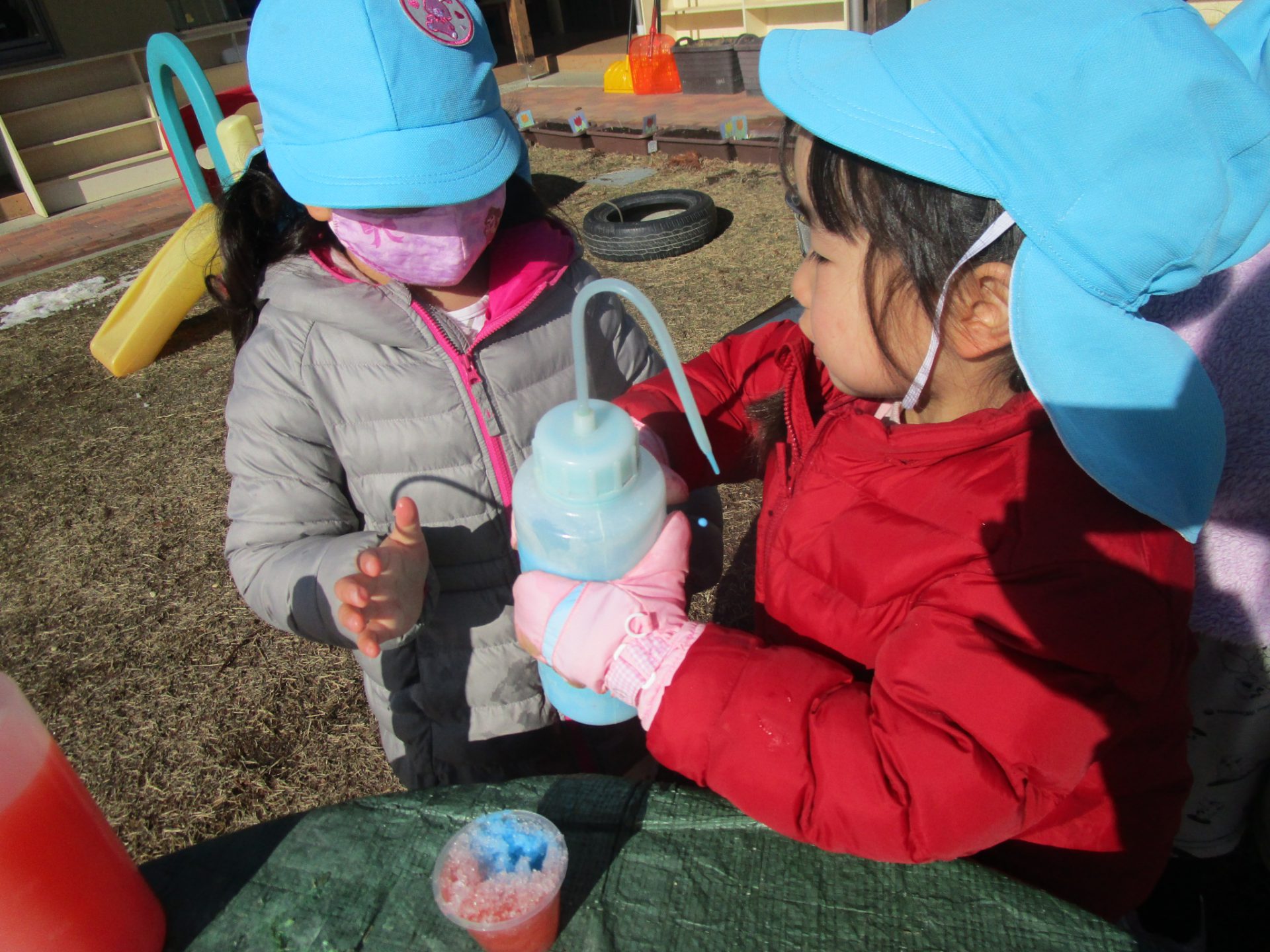 「これで色をつけて、かき氷作ろう」