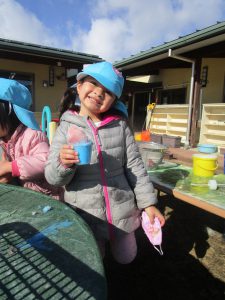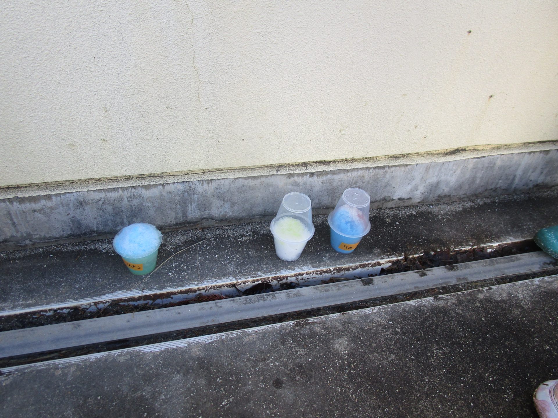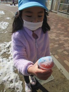 かき氷ができたら、誰のかわからなくならないように名前をつけよう。