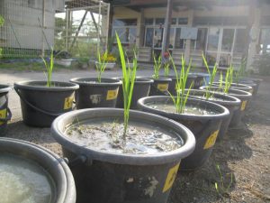 そして田植え。大事に稲を持ち、一人一人のバケツ田んぼに丁寧に植えました。