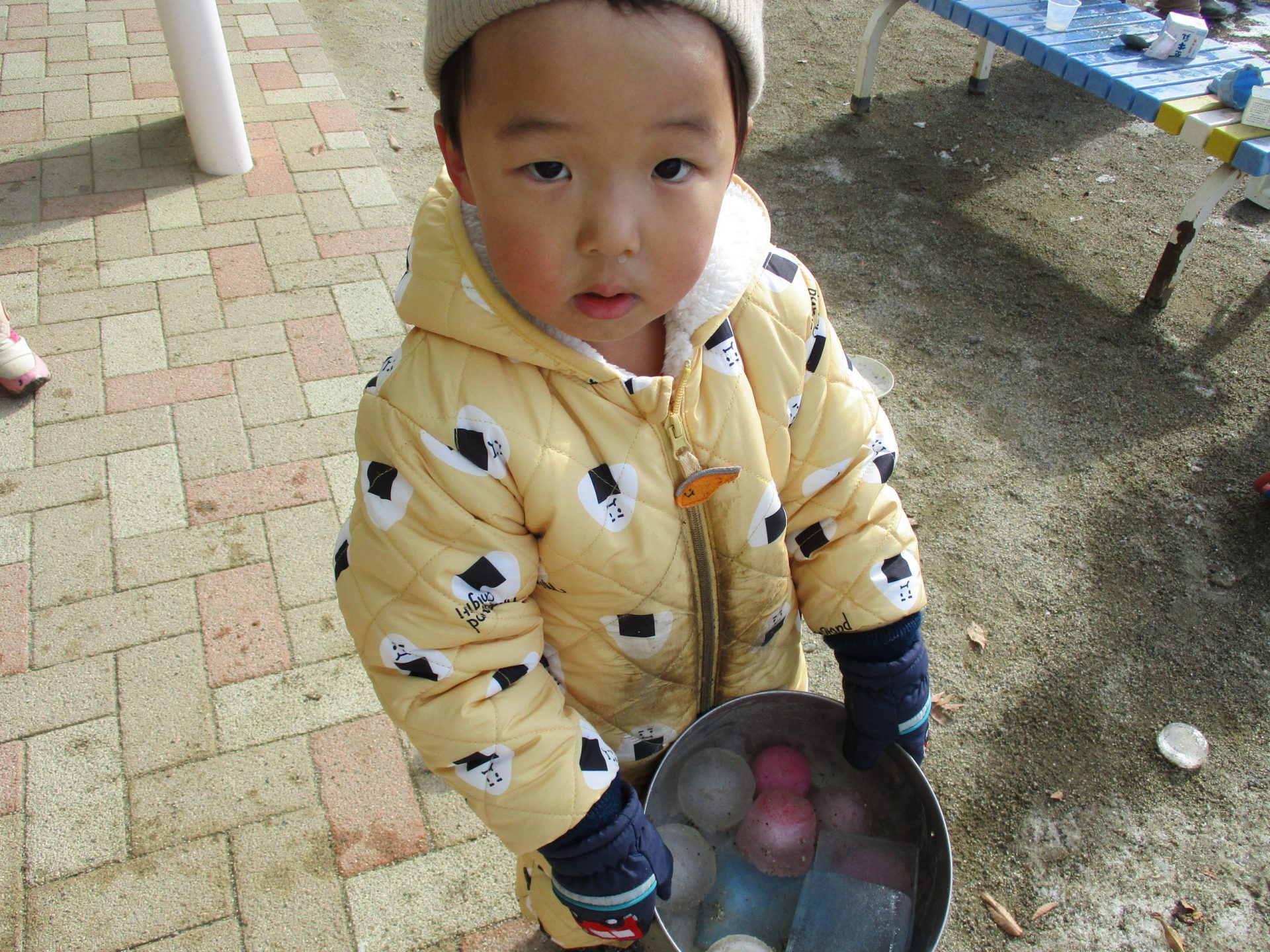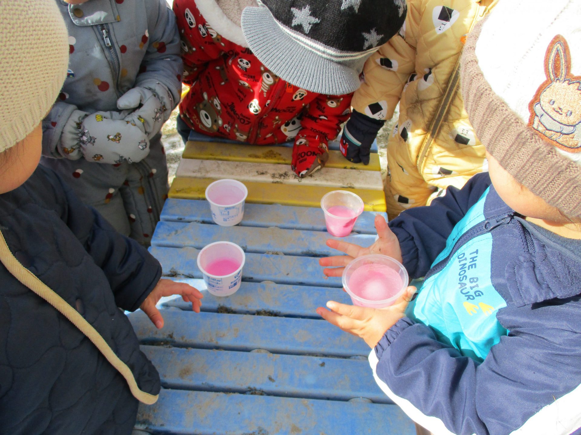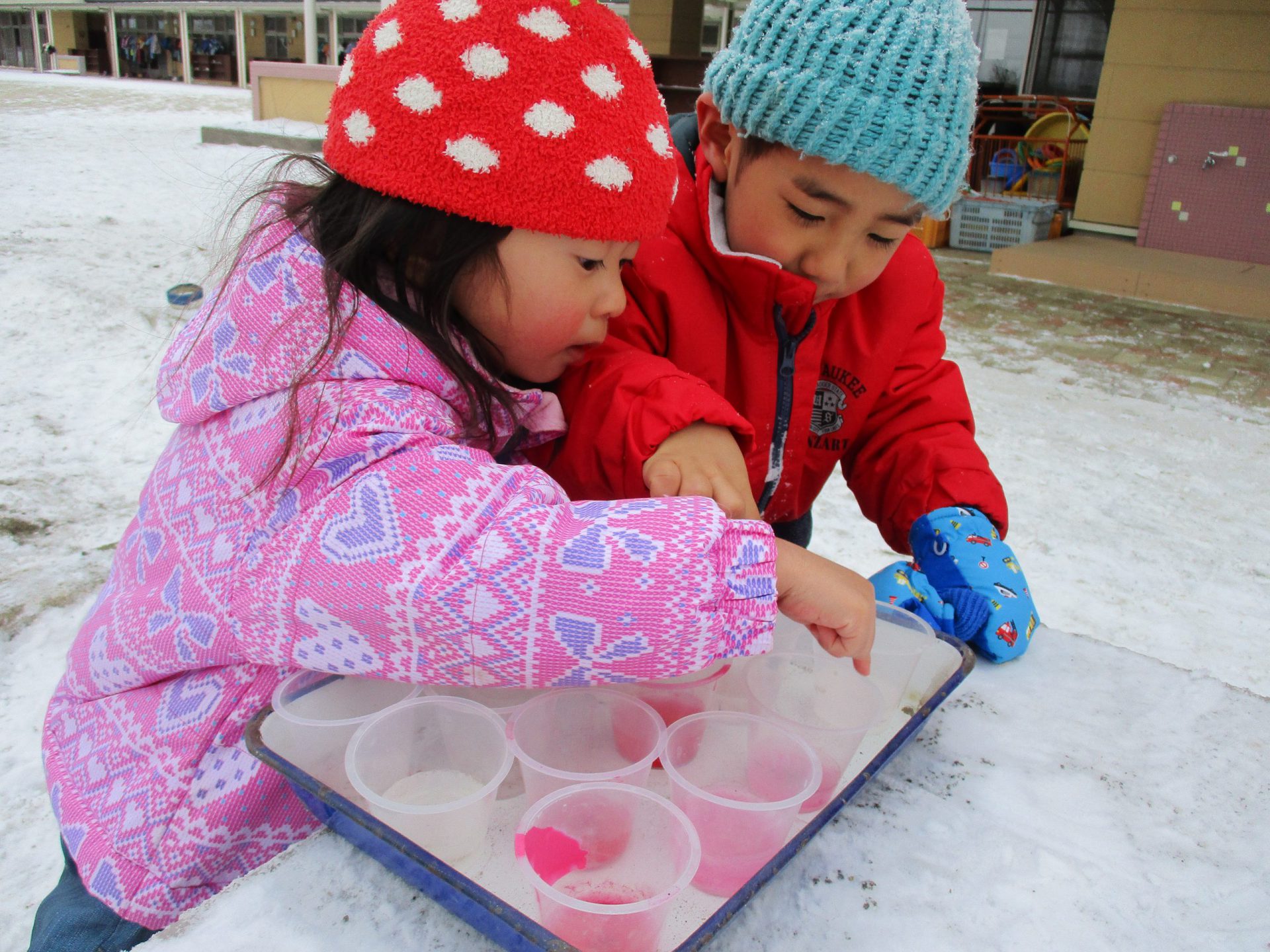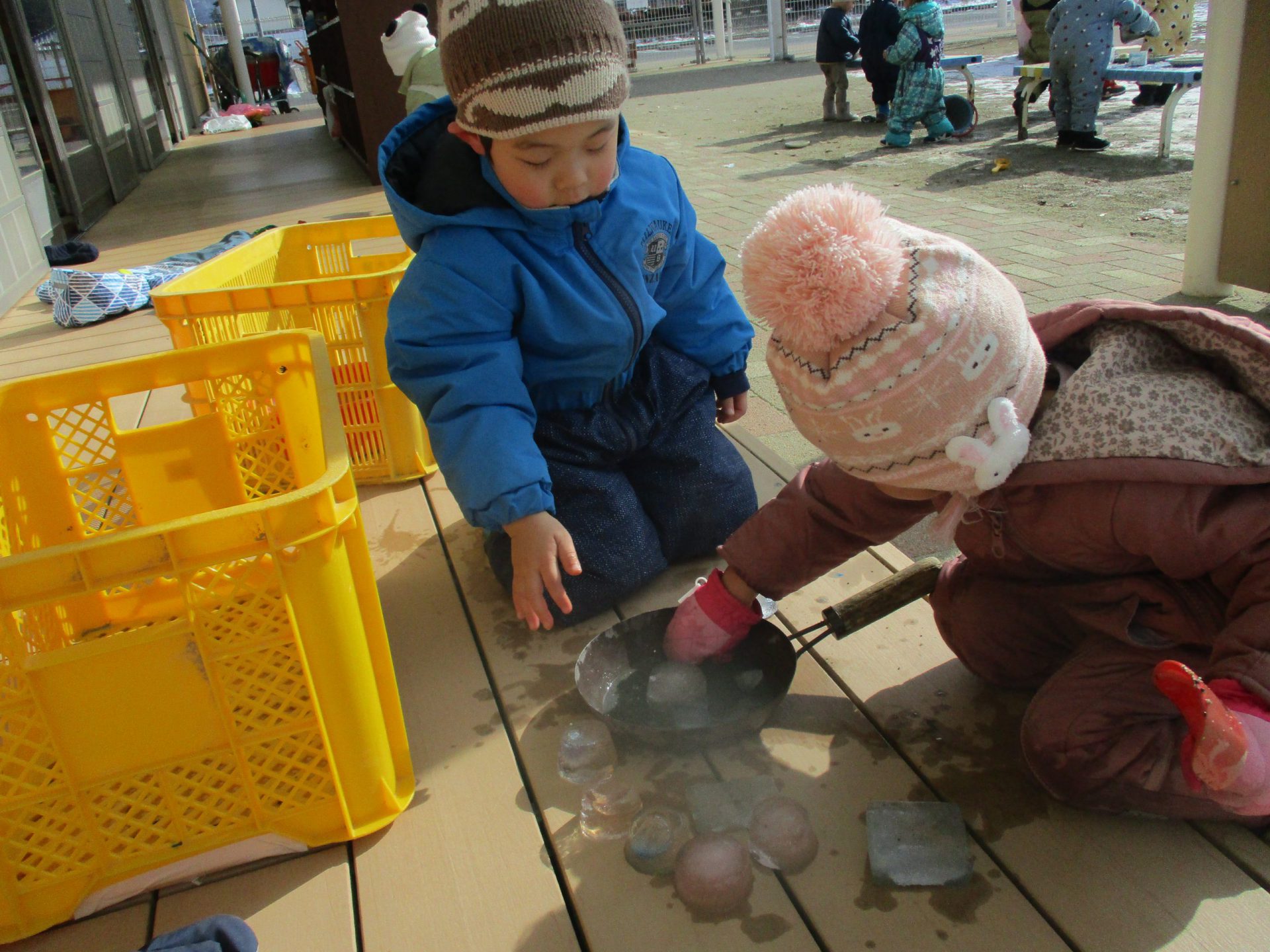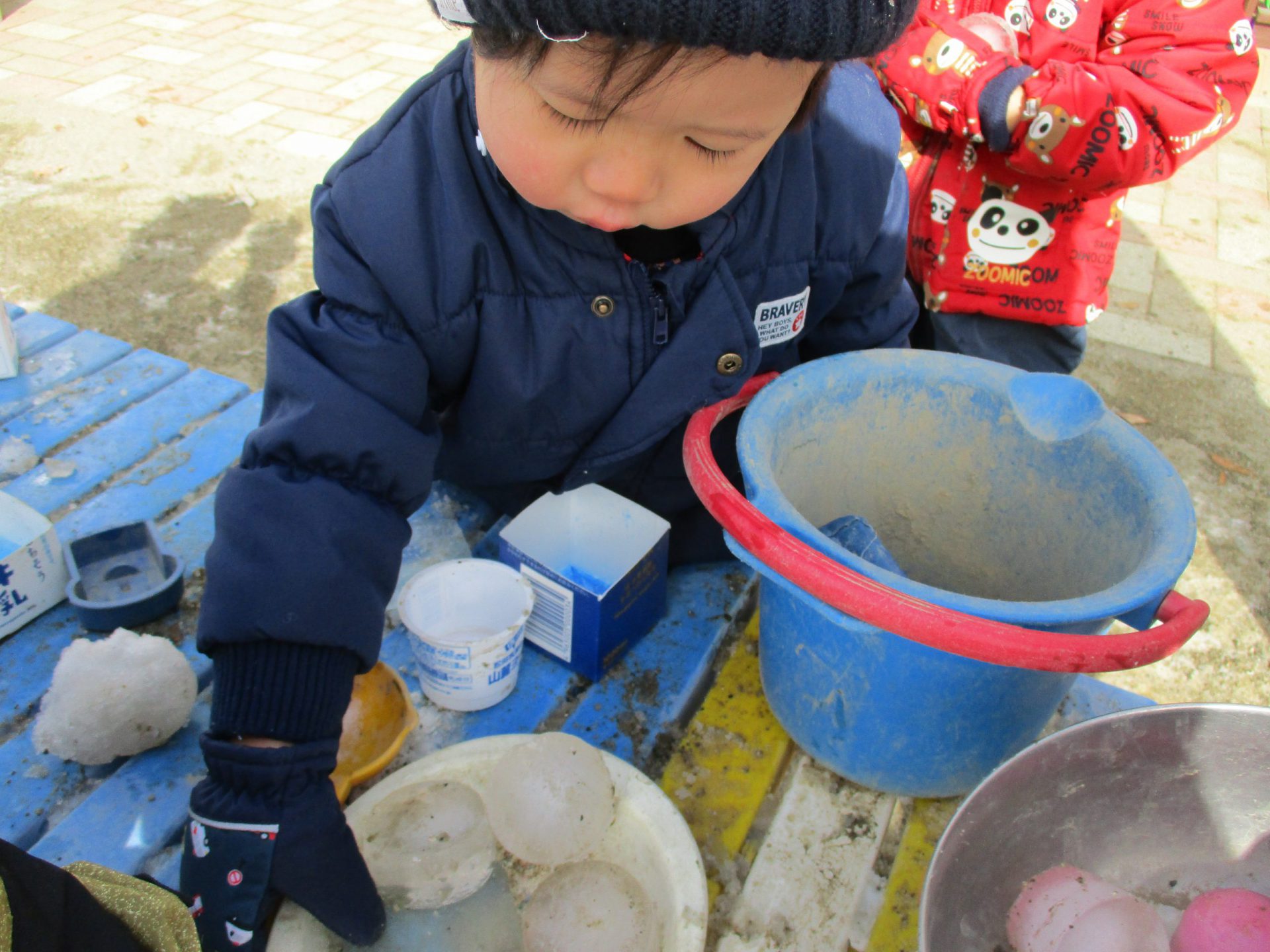 子どものつぶやきをきっかけに始まった氷作り、氷を使った遊び。
