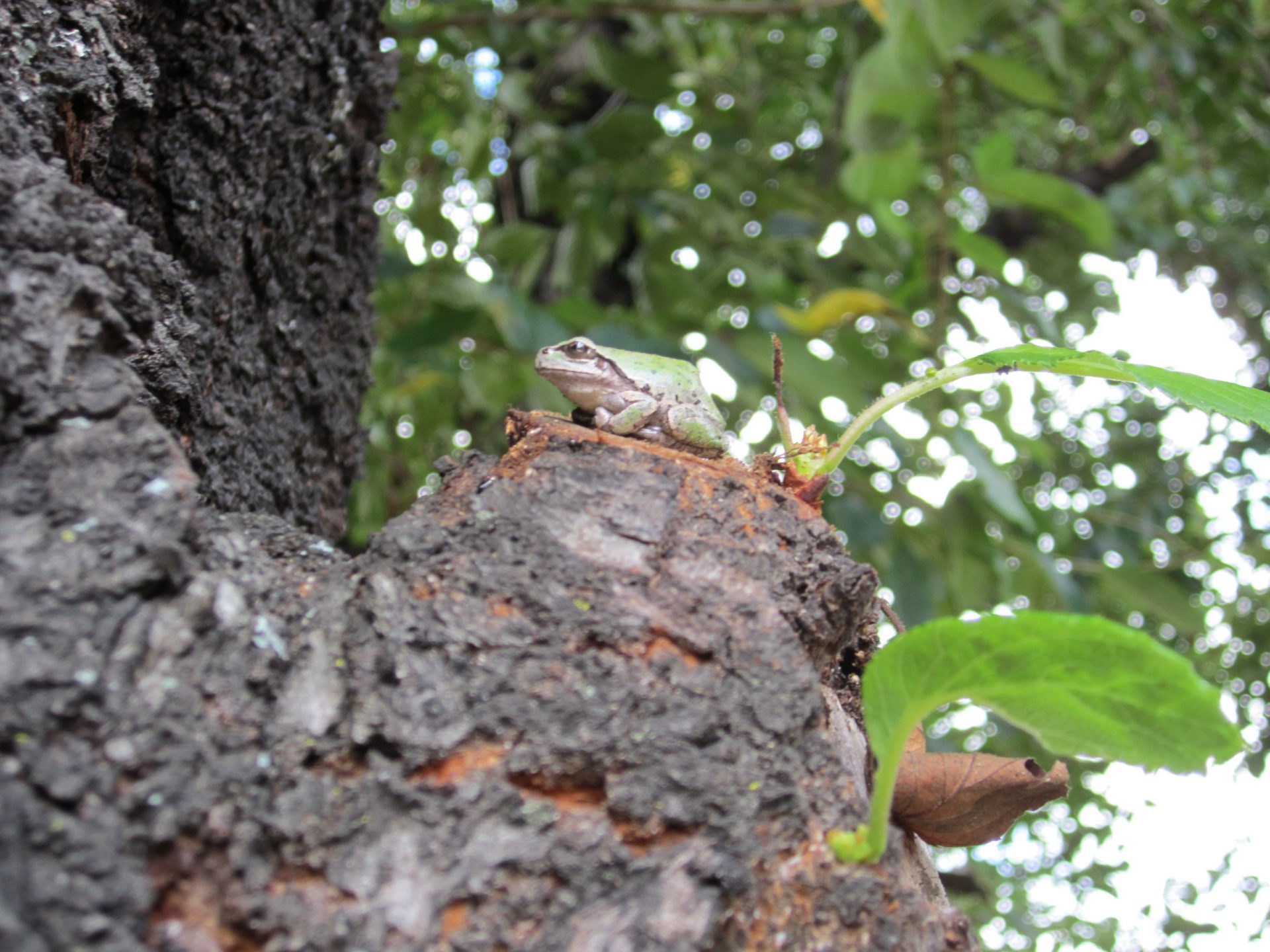 ・いつもは地面や草むらで見つけていたカエルは、木の上にいることもある