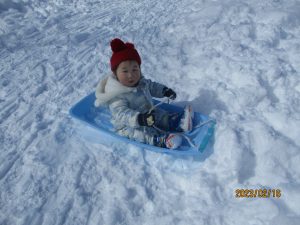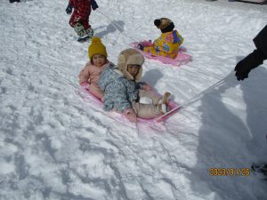 「そりやりたい」と言ったりして、保育士に引っ張ってもらいそり滑りを楽しみます。