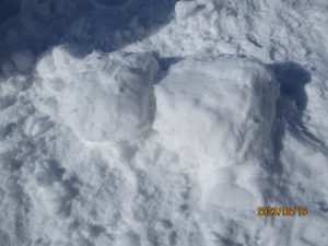 この雪を割りたいようで何度も自分の手で叩いて割ろうとしますが、氷のような雪なので硬くてなかなか割ることができません。
