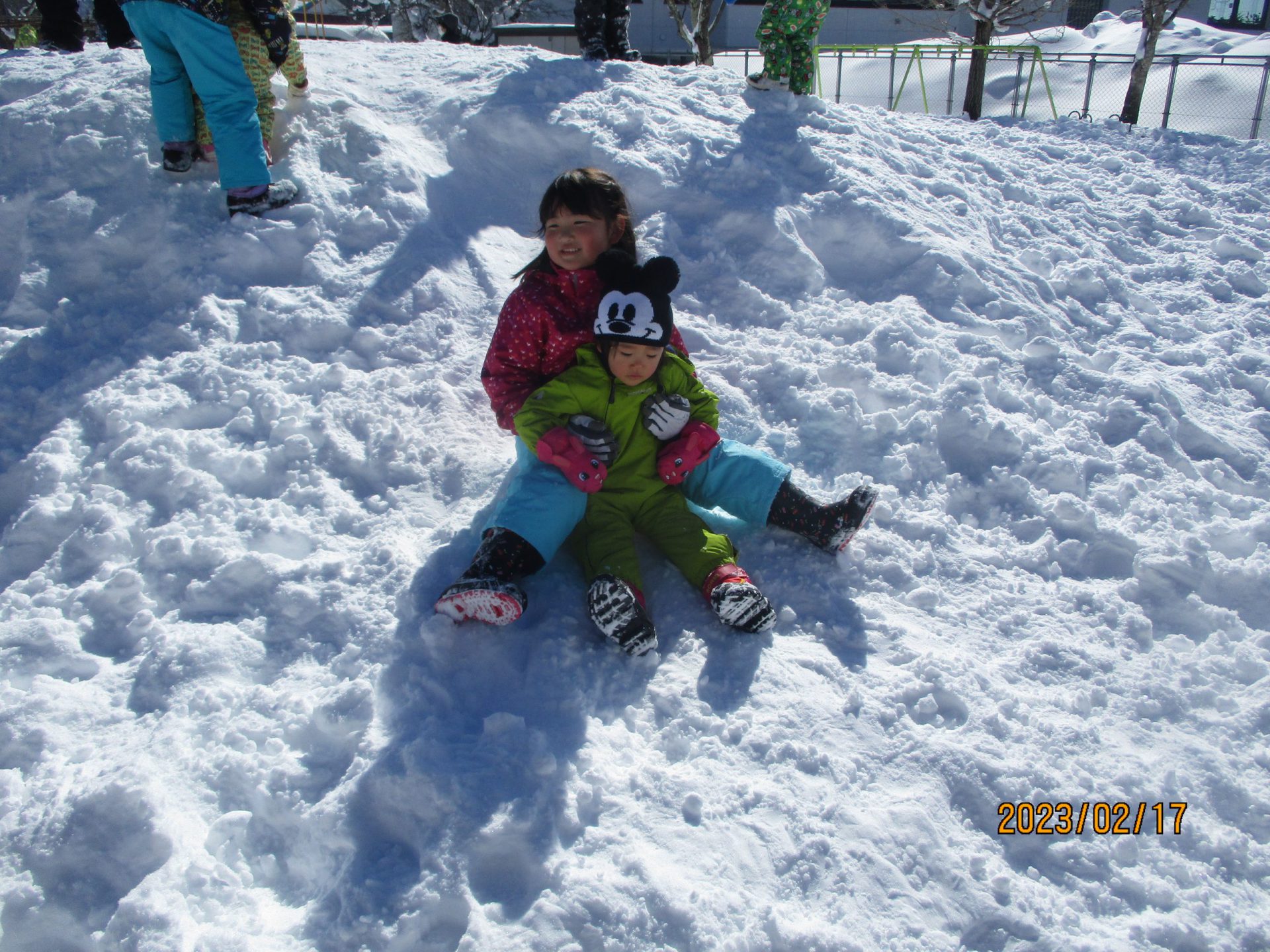 何度も滑り自分のお気に入りのコースを見つけて滑ったり、お姉さんと一緒に滑ったり異年齢の関わりも