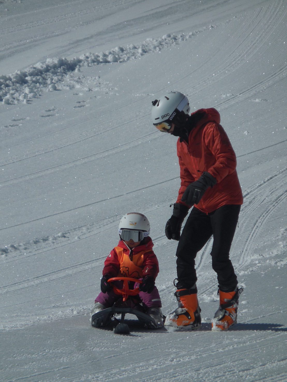 2歳児さんはキッズパークでそり滑りを楽しみました。ママも一緒に!